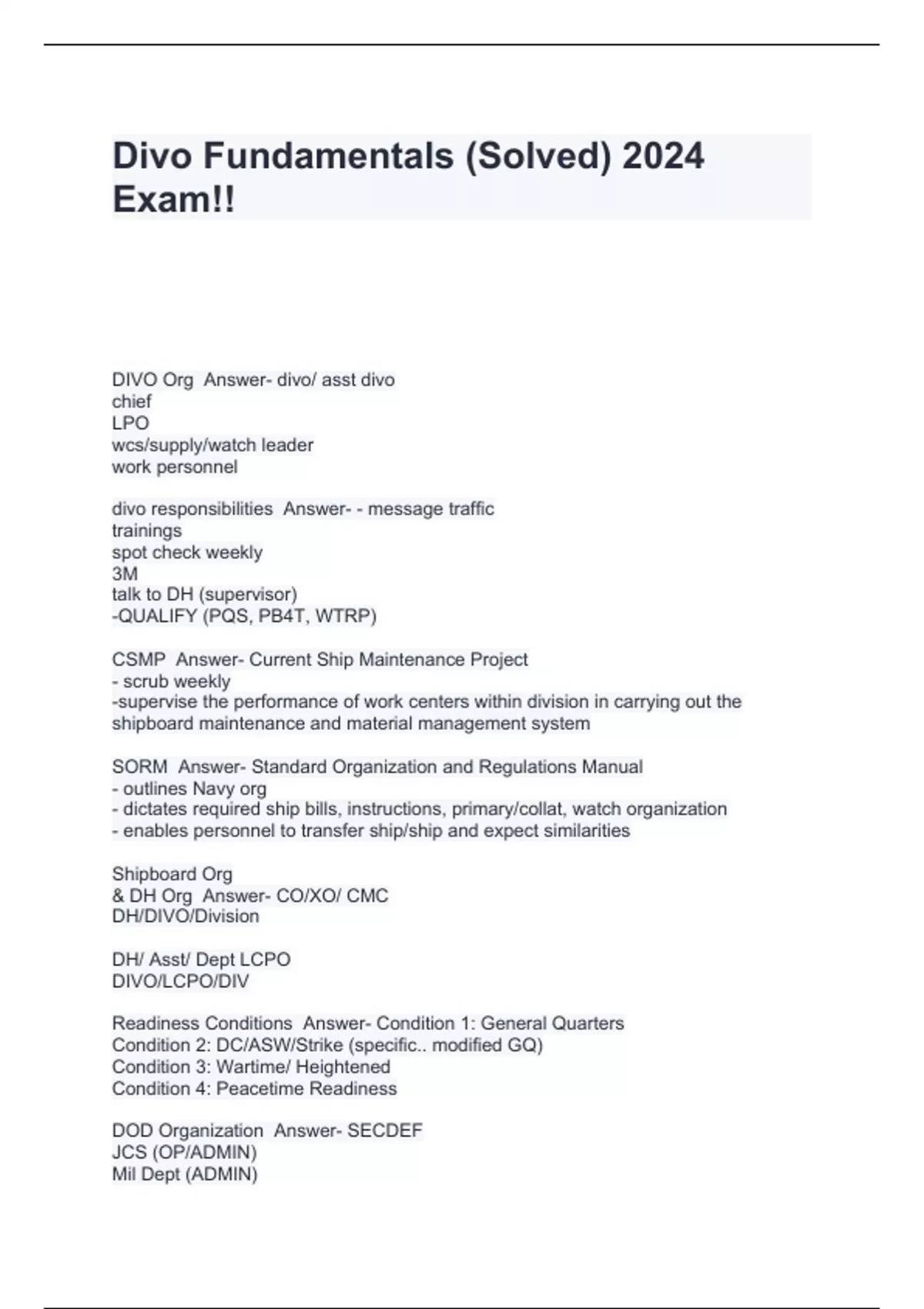 Divo Fundamentals (Solved) 2024 Exam!!