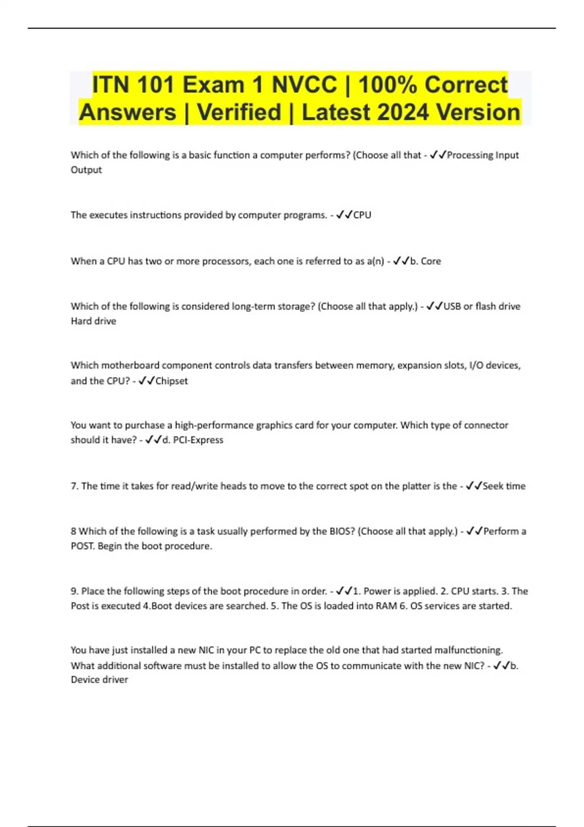ITN 101 Exam 1 NVCC | 100% Correct Answers | Verified | Latest 2024 Version