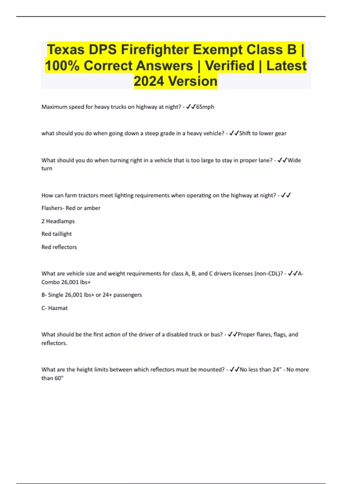 Texas DPS Firefighter Exempt Class B | 100% Correct Answers | Verified | Latest 2024 Version