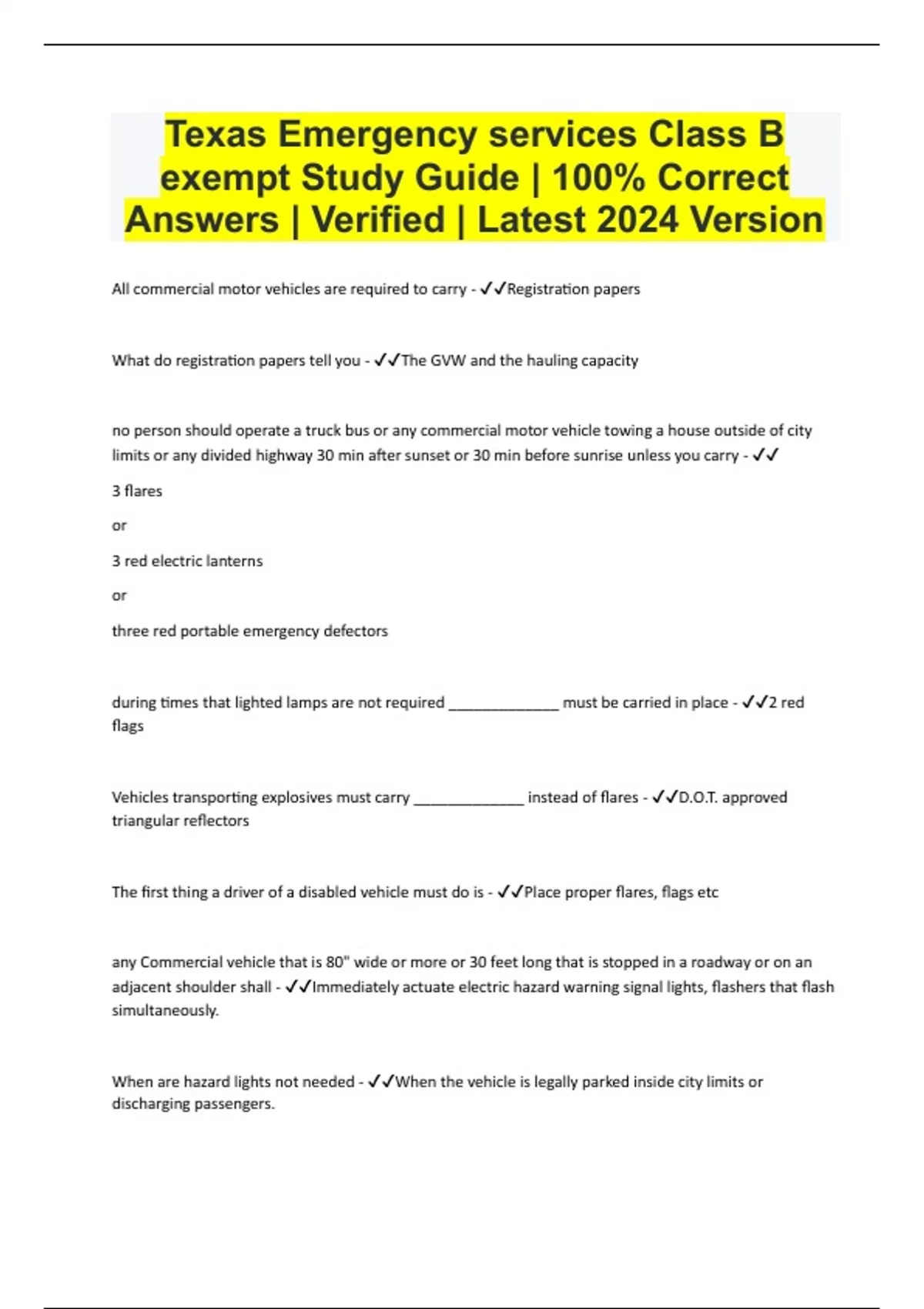 Texas Emergency services Class B exempt Study Guide | 100% Correct Answers | Verified | Latest 2024 Version