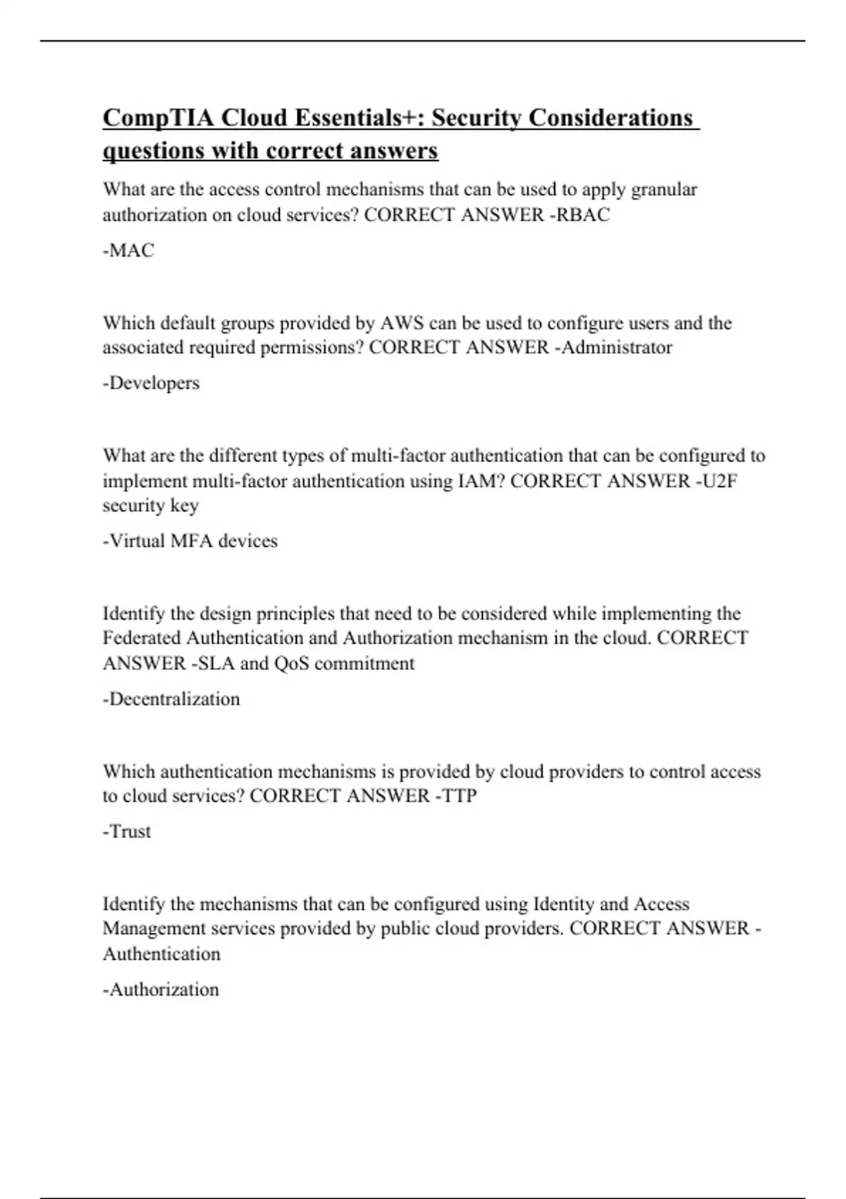 CompTIA Cloud Essentials+: Security Considerations questions with correct answers