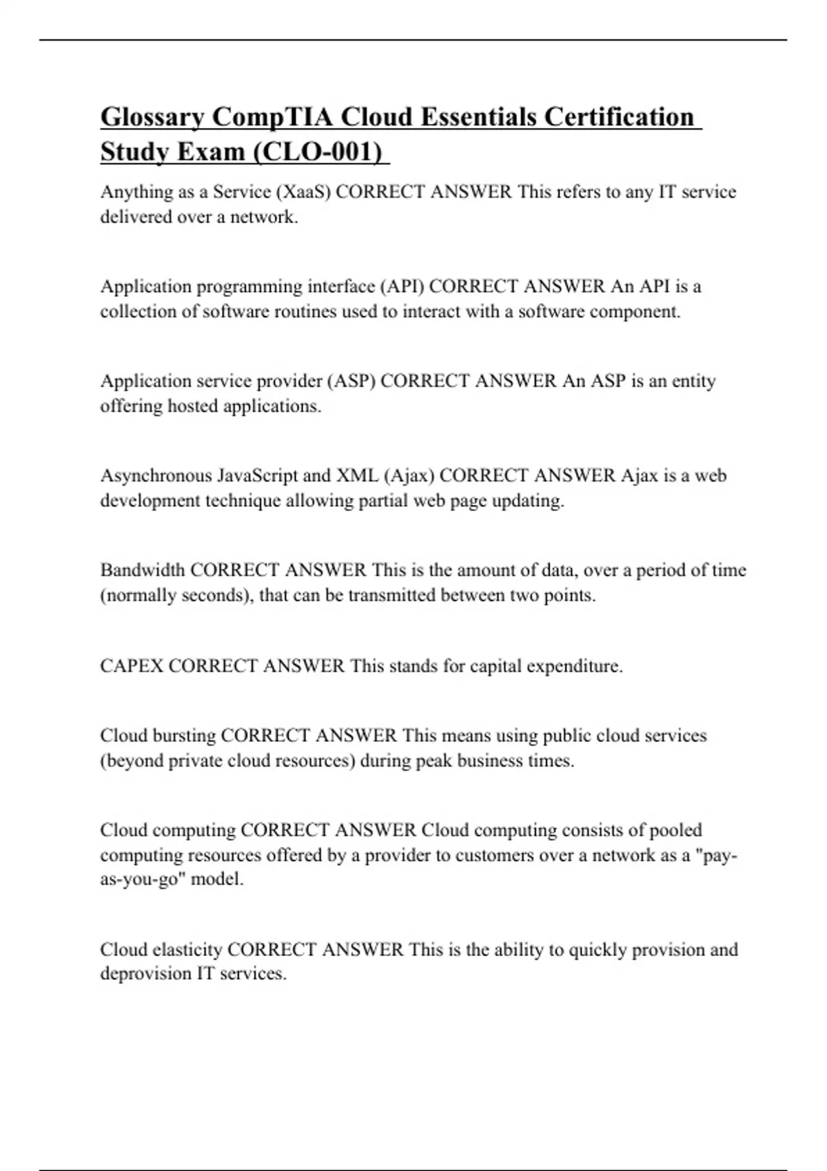 Glossary CompTIA Cloud Essentials Certification Study Exam (CLO-001)