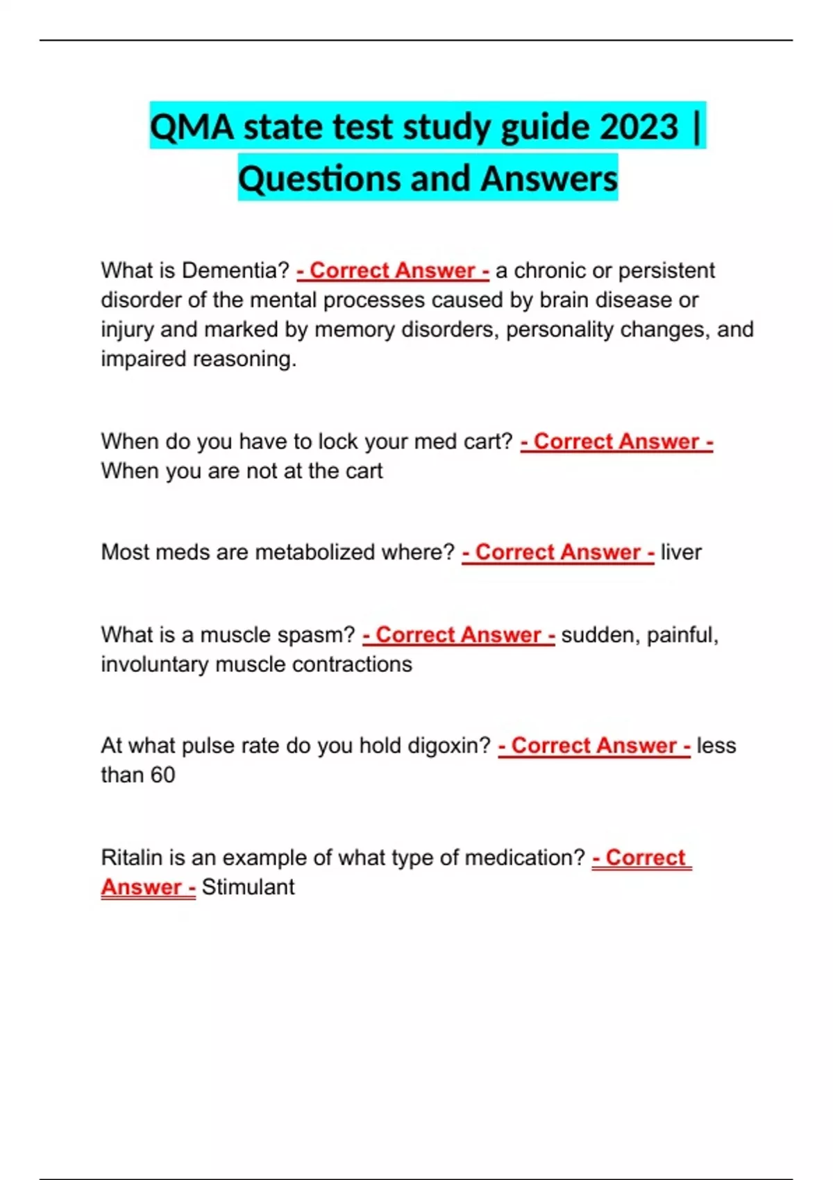 QMA state test study guide 2023 | Questions and Answers QMA state test study guide 2023 | Questions and Answers QMA state test study guide 2023 | Questions and Answers