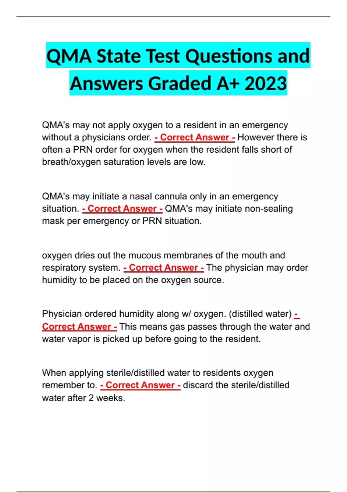 QMA State Test Questions and Answers Graded A+ 2023