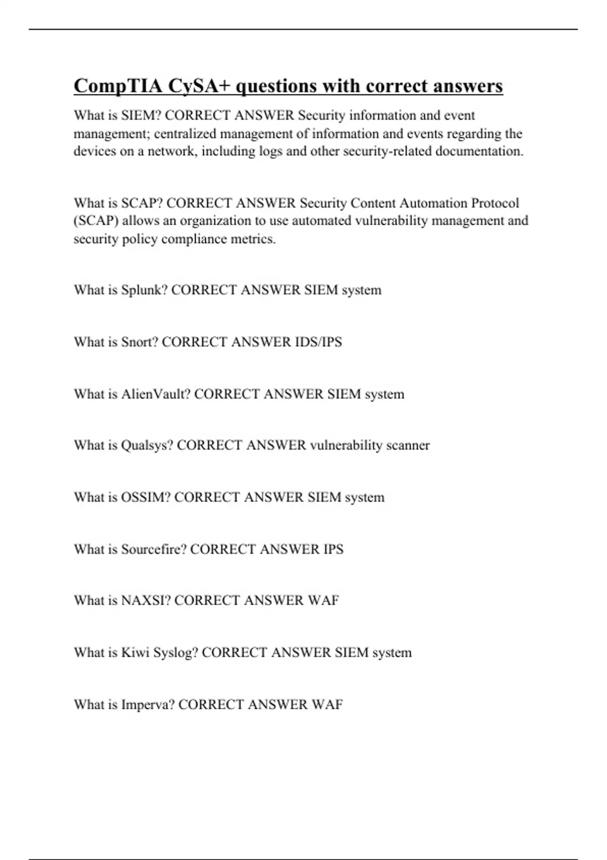 CompTIA CySA+ questions with correct answers