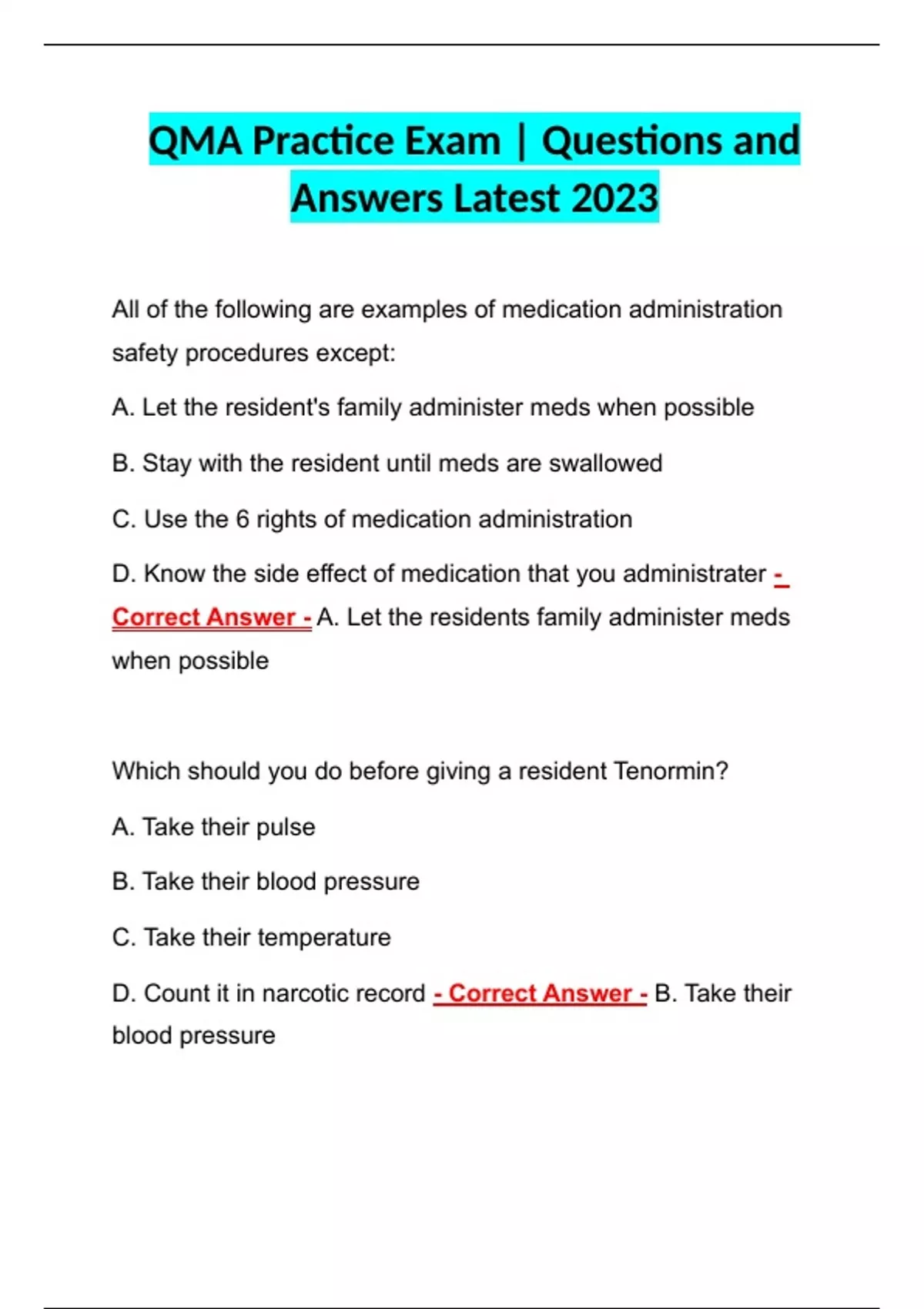 QMA Practice Exam | Questions and Answers Latest 2023 QMA Practice Exam | Questions and Answers Latest 2023 QMA Practice Exam | Questions and Answers Latest 2023