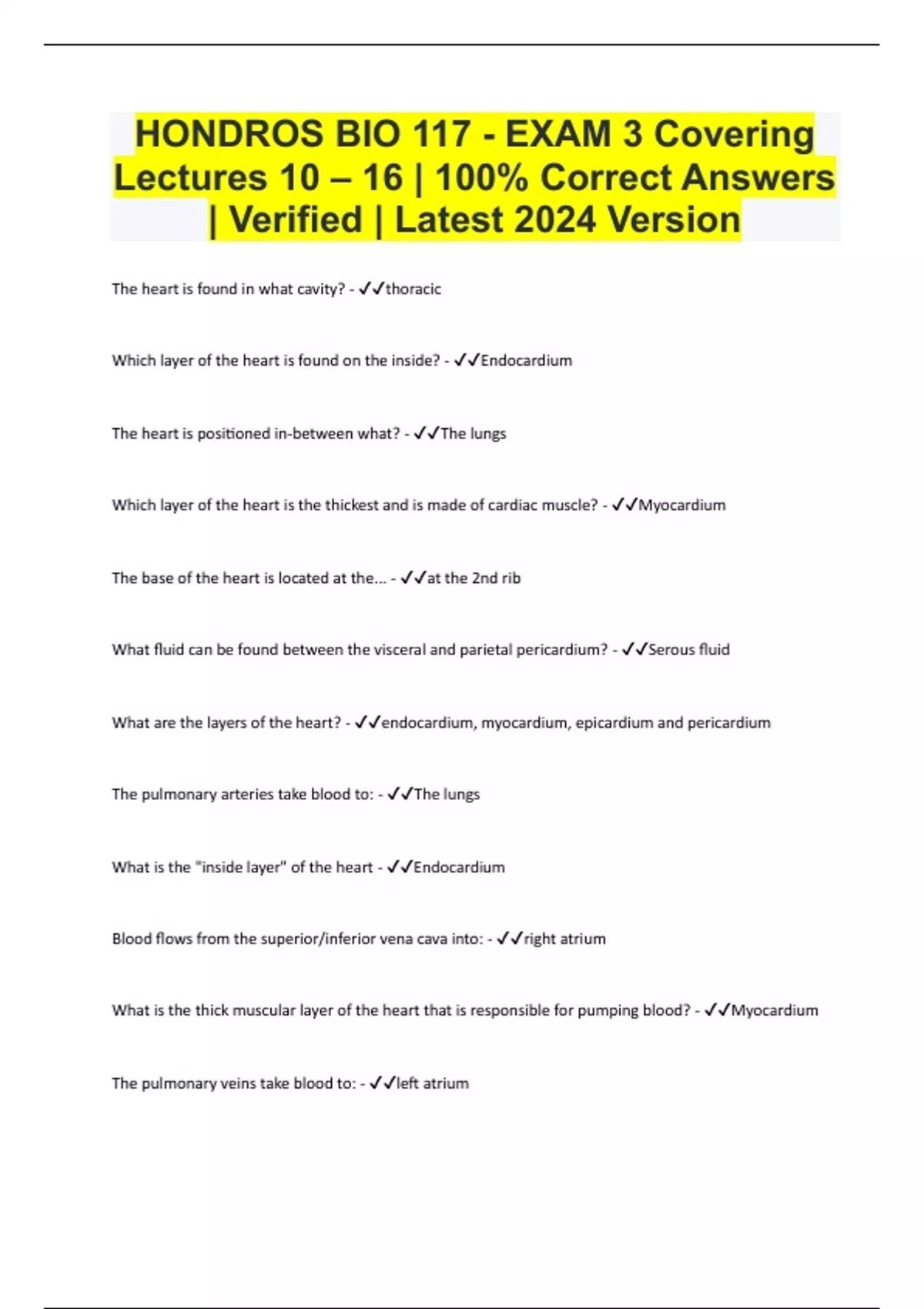 HONDROS BIO 117 - EXAM 3 Covering Lectures 10 – 16 | 100% Correct Answers | Verified | Latest 2024 Version