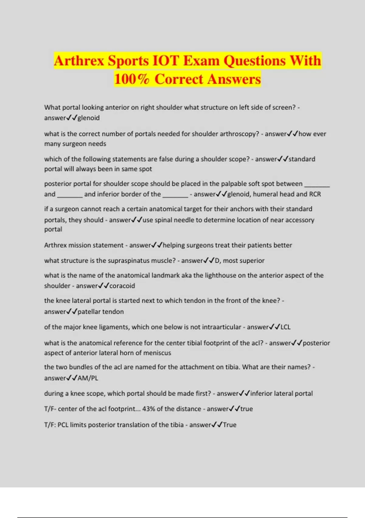 Arthrex Sports IOT Exam Questions With 100% Correct Answers