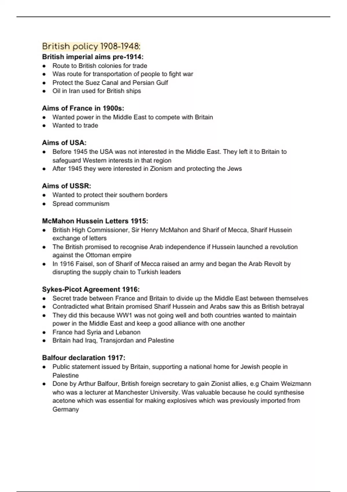 British policy 1908-1948:
