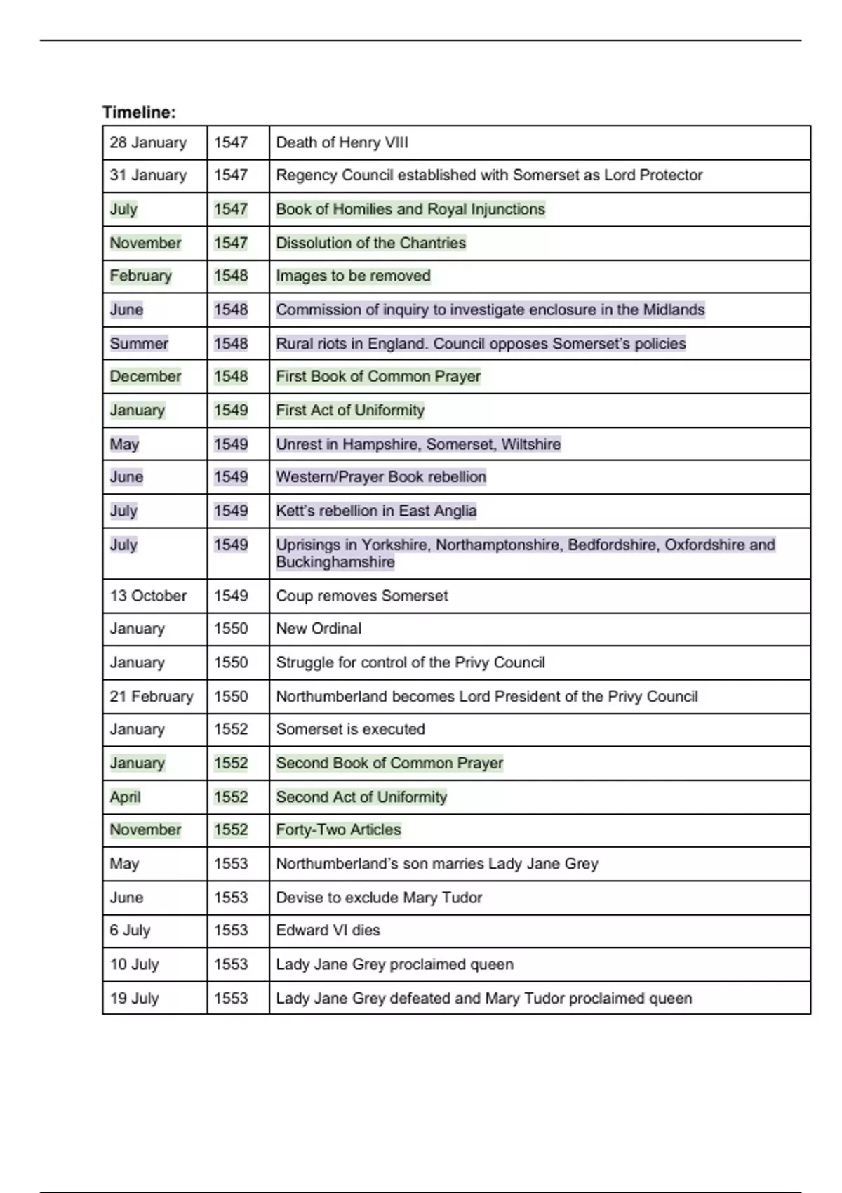 These documents detail, the Mid-Tudor Crisis and reign of Edward, Mary and Elizabeth after the death of Henry VIII. Clear, concise of the information you need and nothing more or less