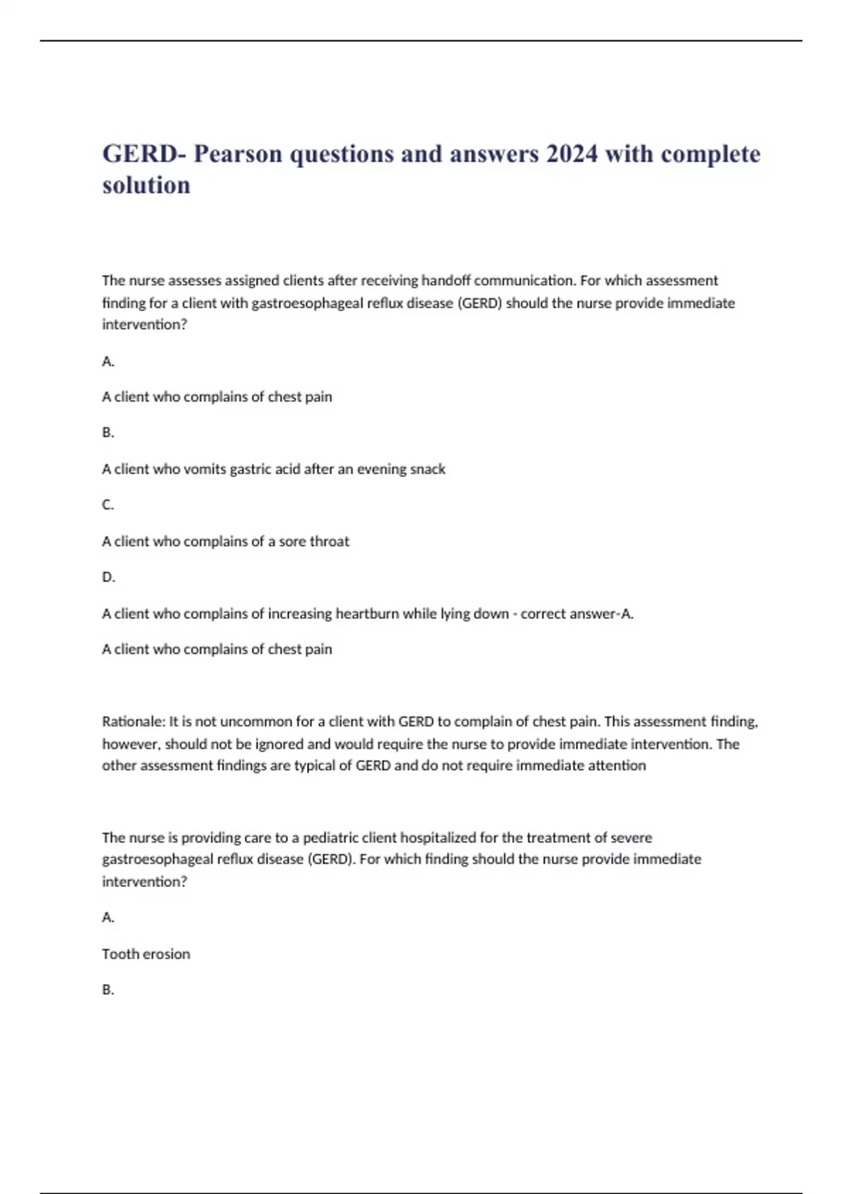 GERD- Pearson questions and answers 2024 with complete solution