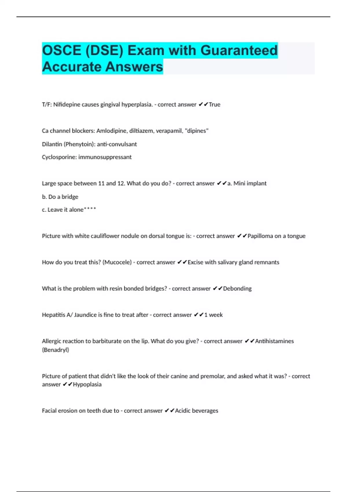 OSCE (DSE) Exam with Guaranteed Accurate Answers