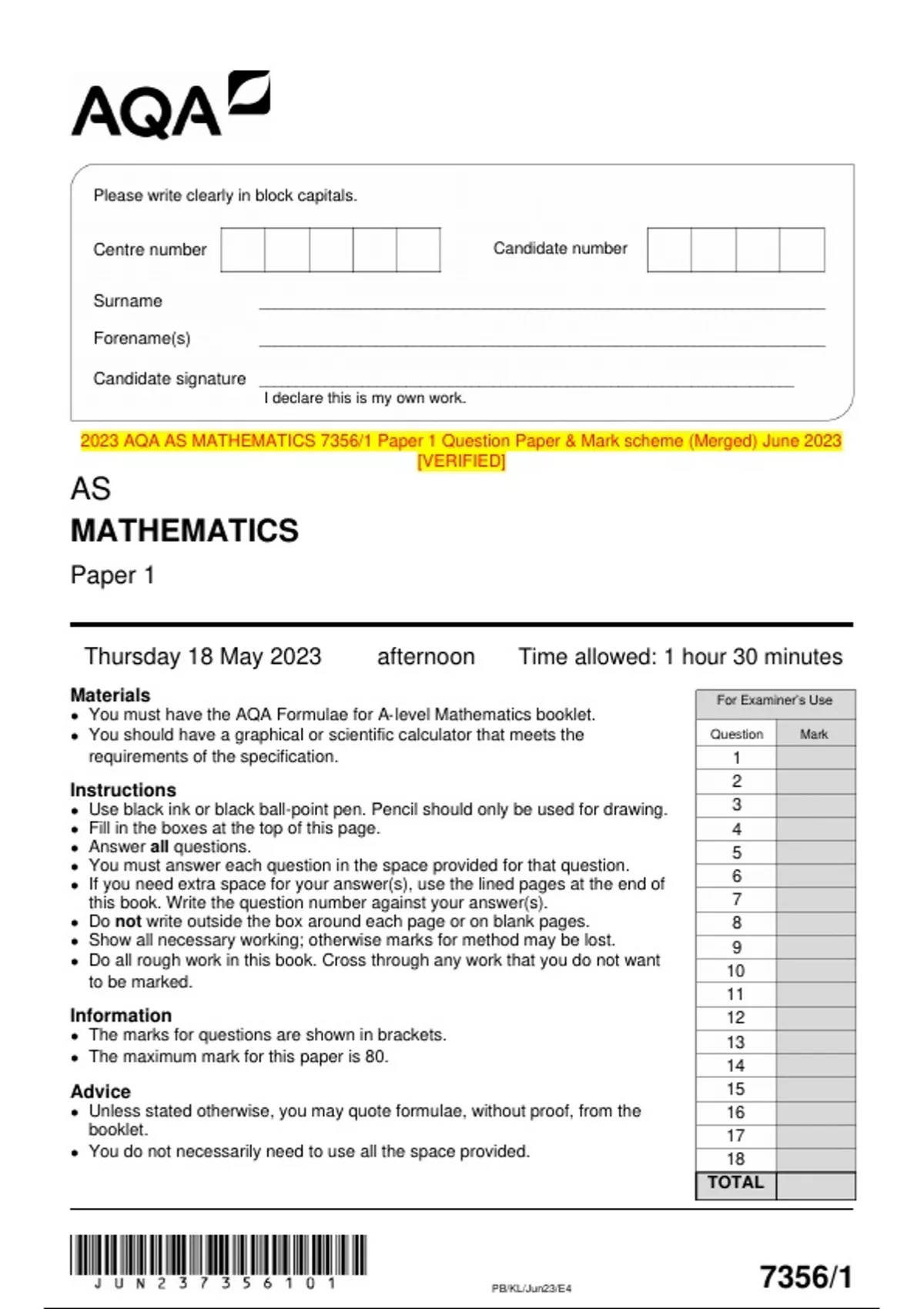 2023 AQA GCE :ALL MATHEMATICS PAPERS