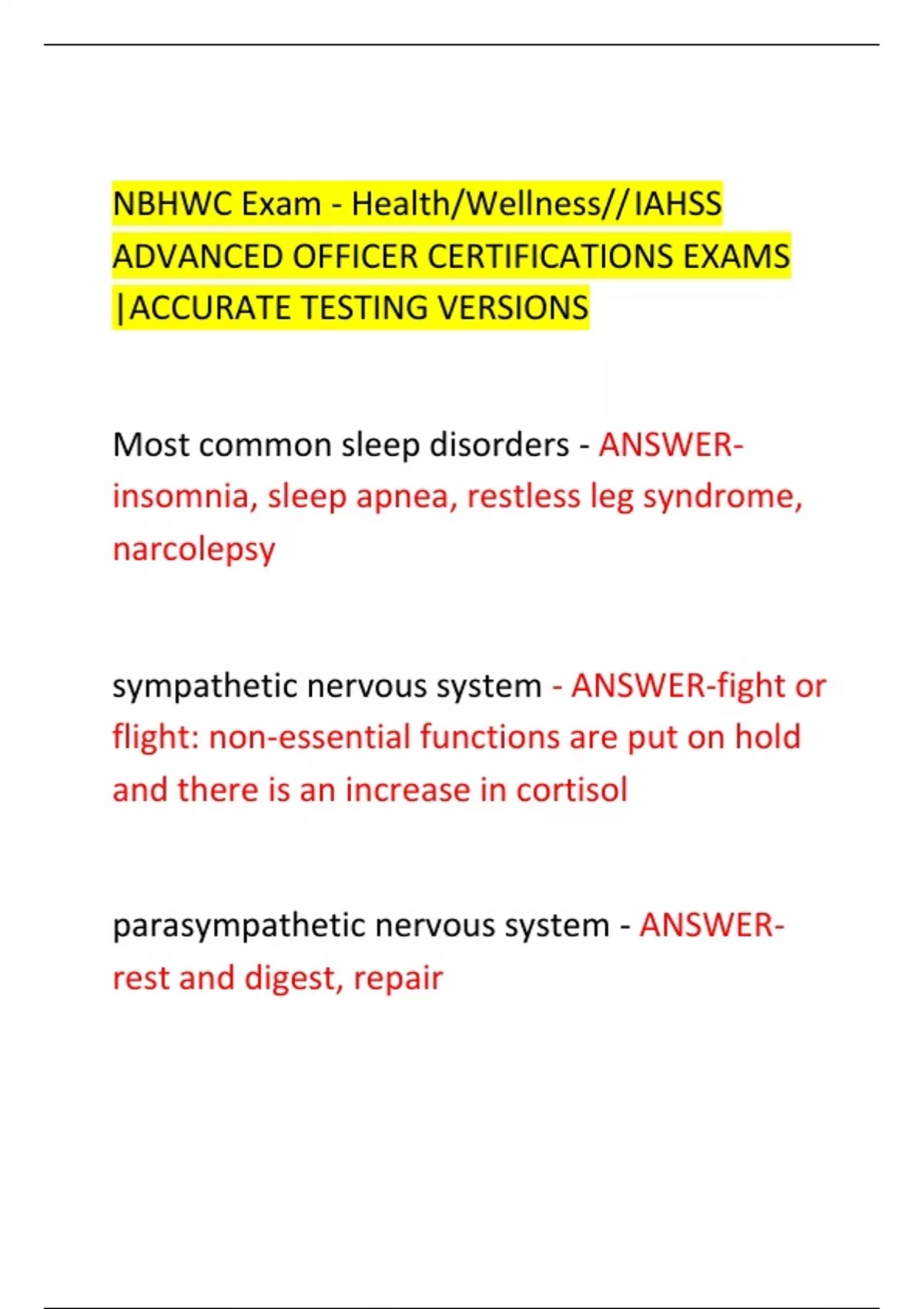 NBHWC Exam - Health/Wellness//IAHSS ADVANCED OFFICER CERTIFICATIONS EXAMS |ACCURATE TESTING VERSIONS