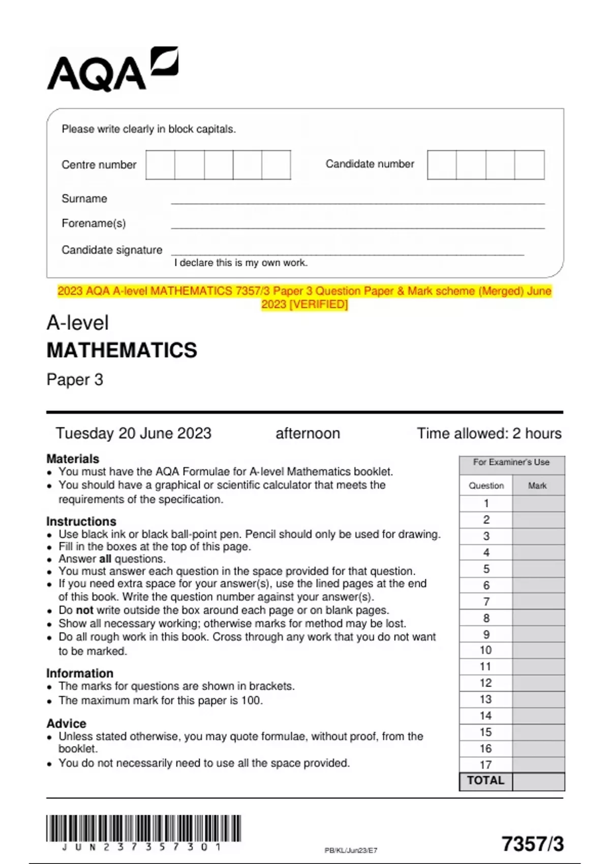 2023 AQA GCE :ALL MATHEMATICS PAPERS