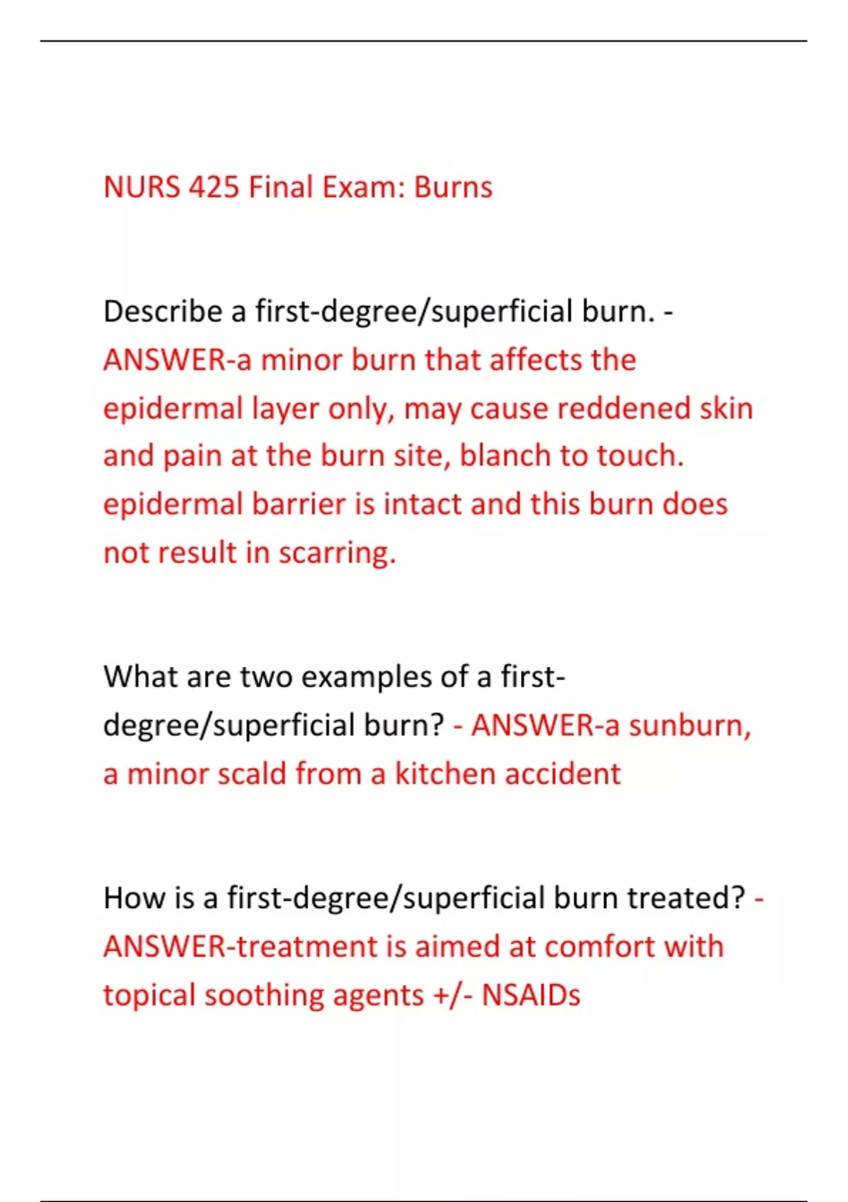 NURS 425 Final Exam: Burns