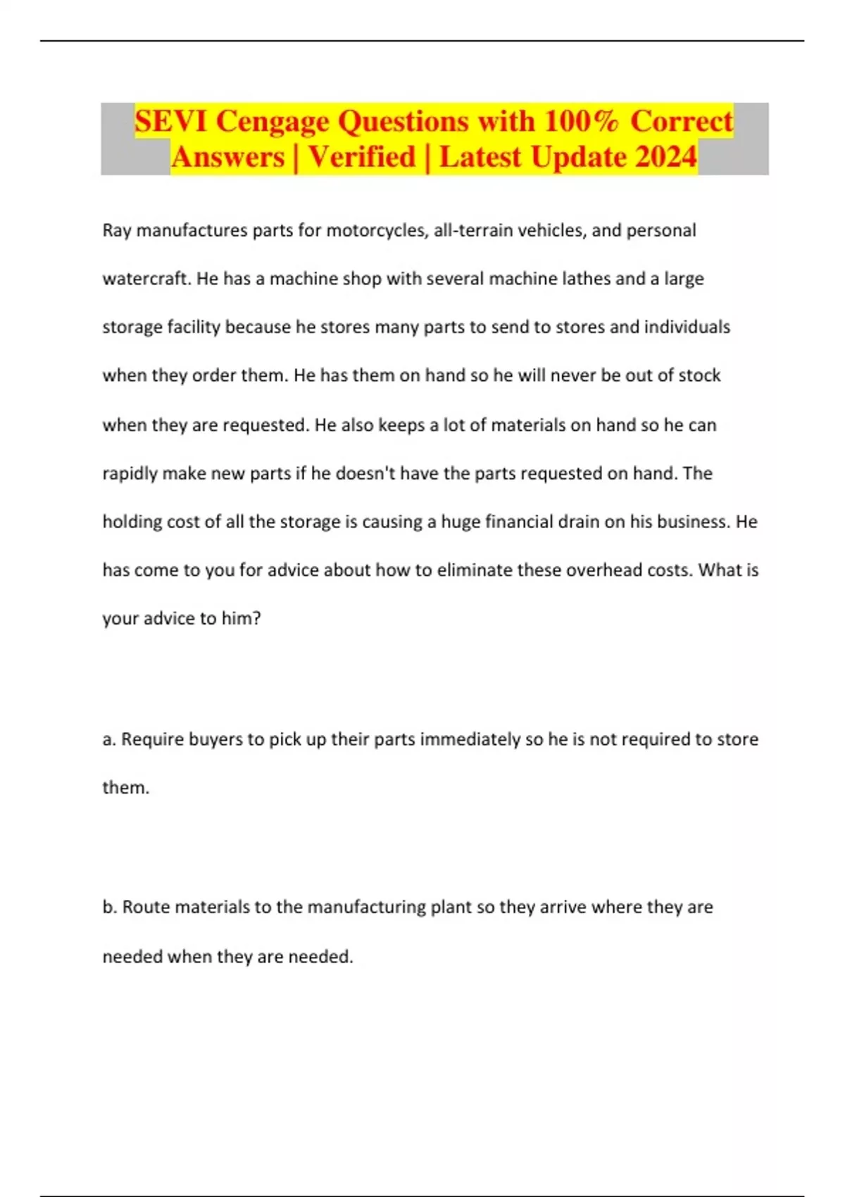 SEVI Cengage Questions with 100% Correct Answers | Verified | Latest Update 2024