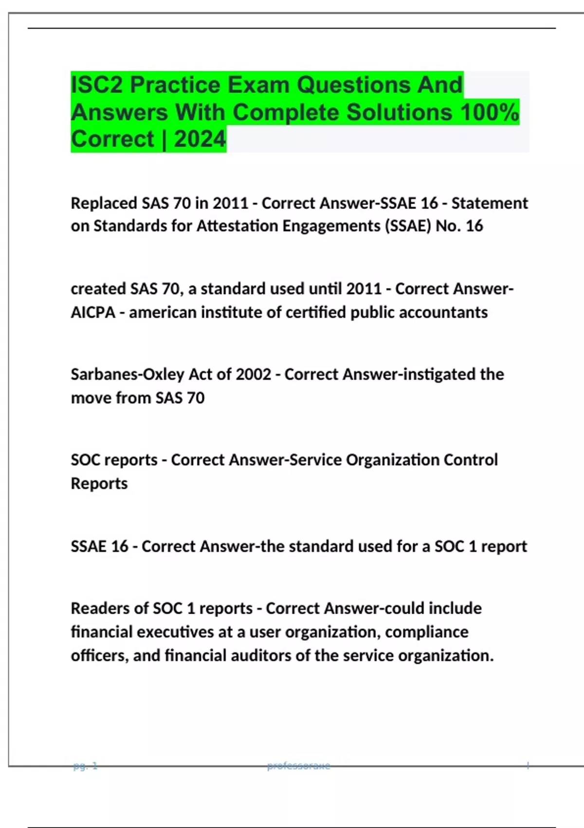 ISC2 Practice Exam Questions And Answers With Complete Solutions 100% Correct | 2024