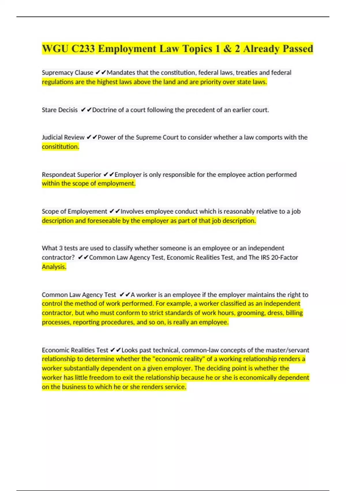contractor? ✔✔Common Law Agency Test, Economic Realities Test, and The IRS 20-Factor