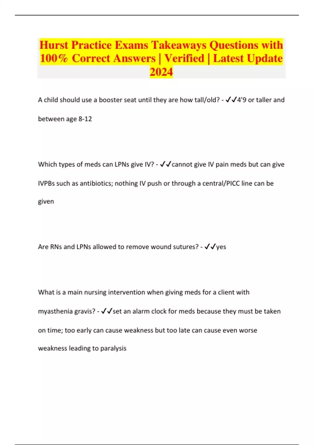 Hurst Practice Exams Takeaways Questions with 100% Correct Answers | Verified | Latest Update 2024
