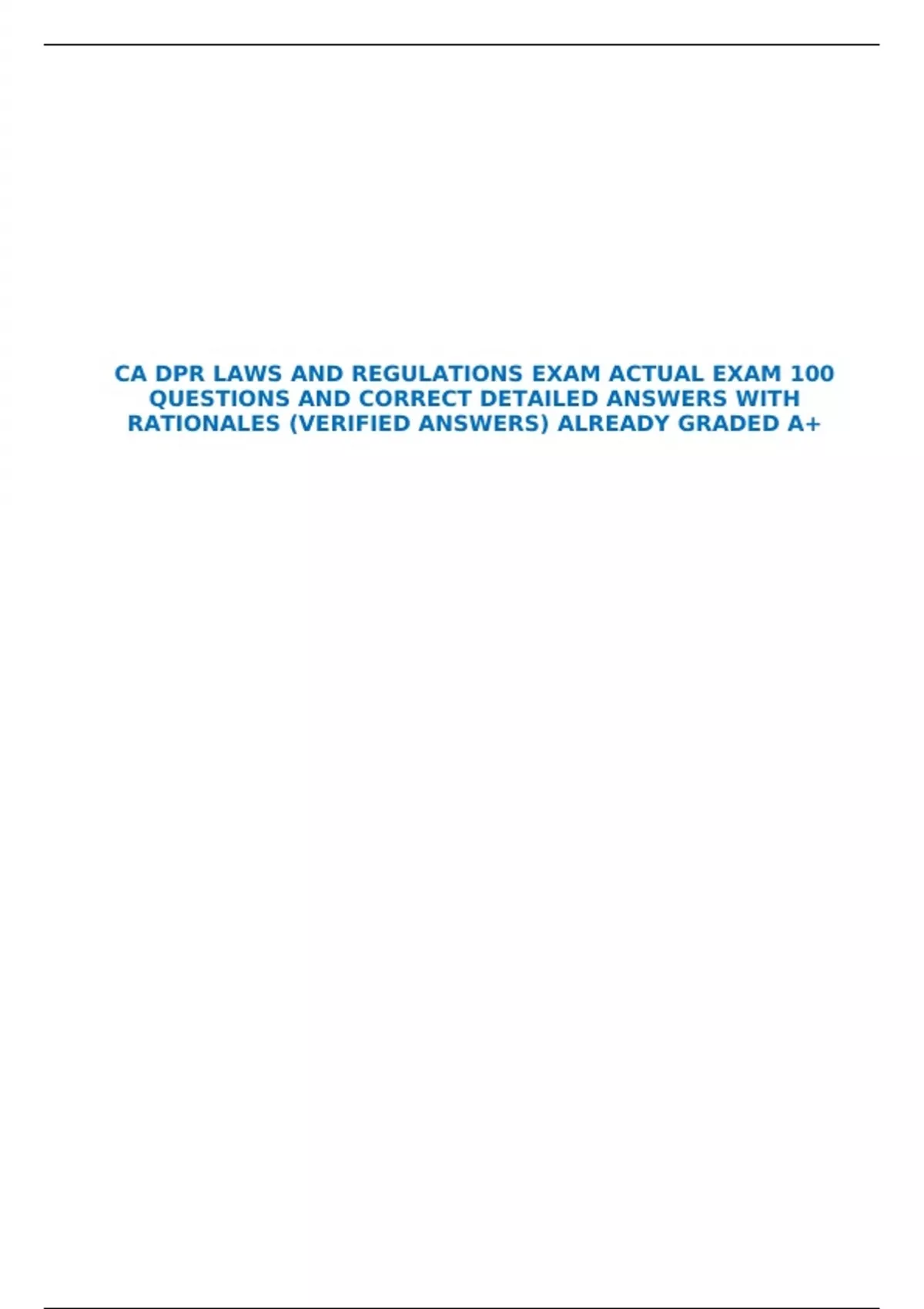 CA DPR LAWS AND REGULATIONS EXAM ACTUAL EXAM 100 QUESTIONS AND CORRECT DETAILED ANSWERS WITH RATIONALES (VERIFIED ANSWERS) ALREADY GRADED A+