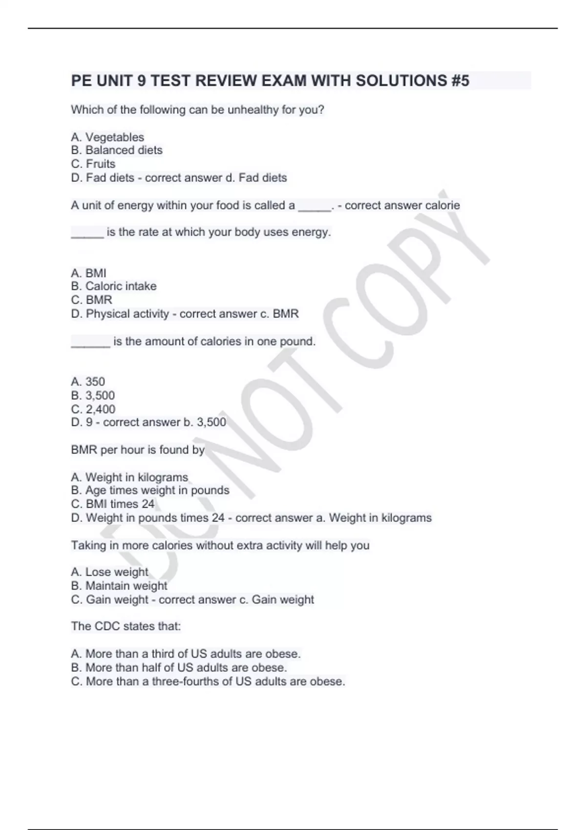 PE UNIT 9 TEST REVIEW EXAM WITH SOLUTIONS #5.