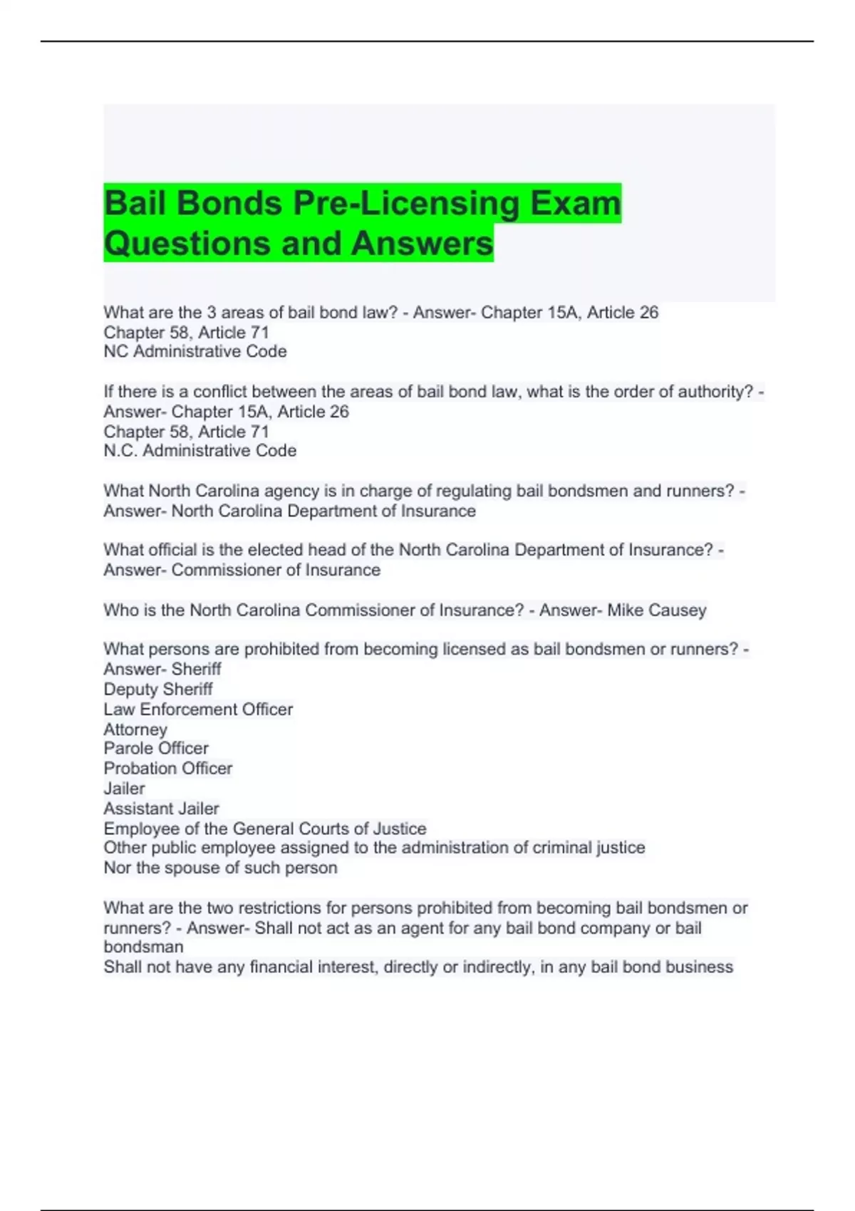 Bail Bonds Pre-Licensing Exam Questions and Answers
