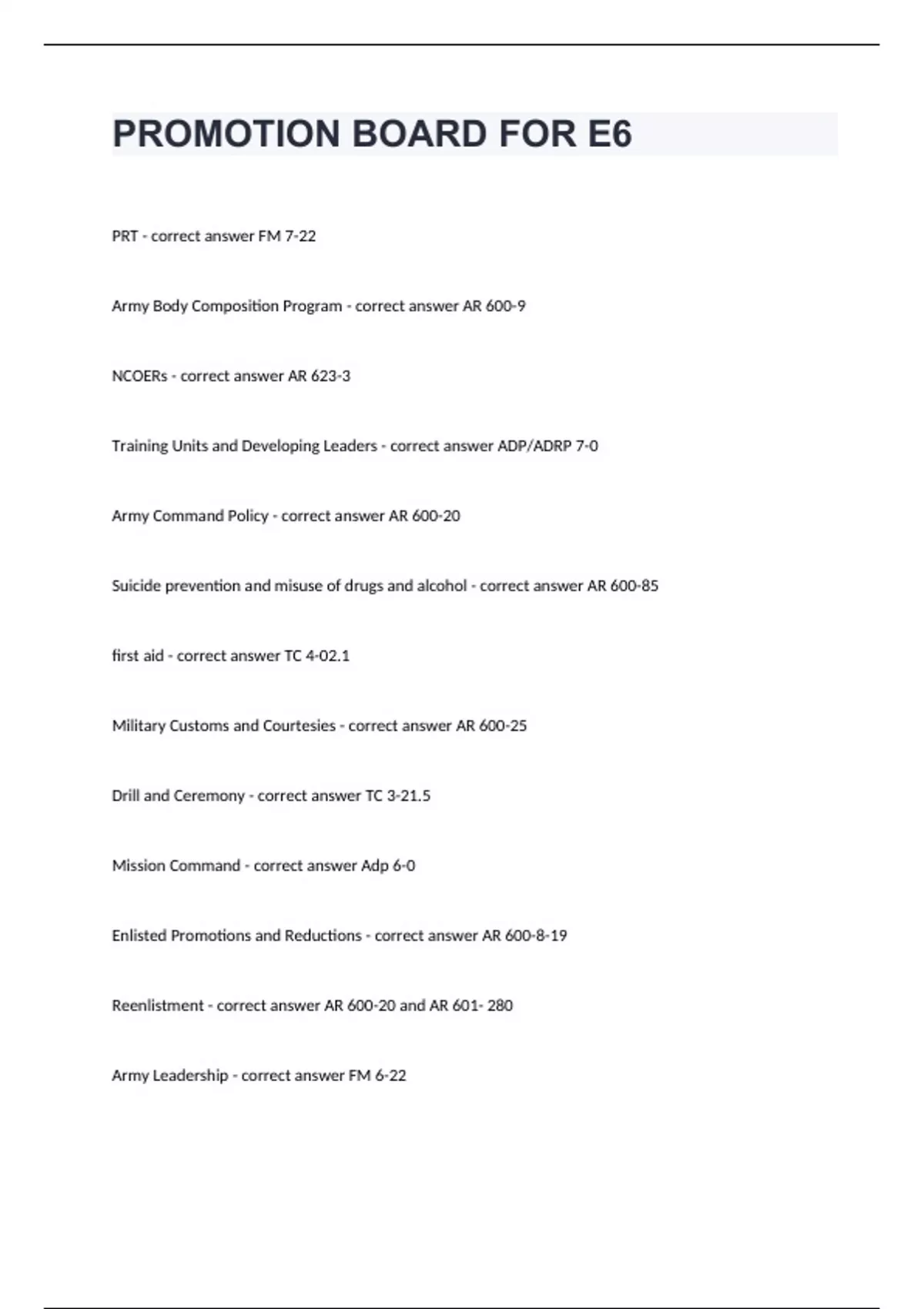 PROMOTION BOARD FOR E6 questions and answers already certified 2024
