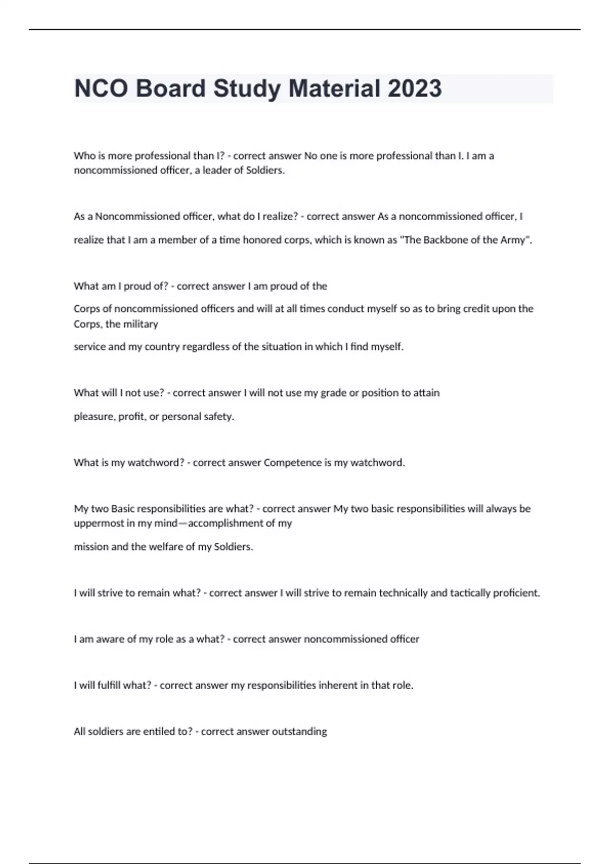nco board study material 2024 questions and answer