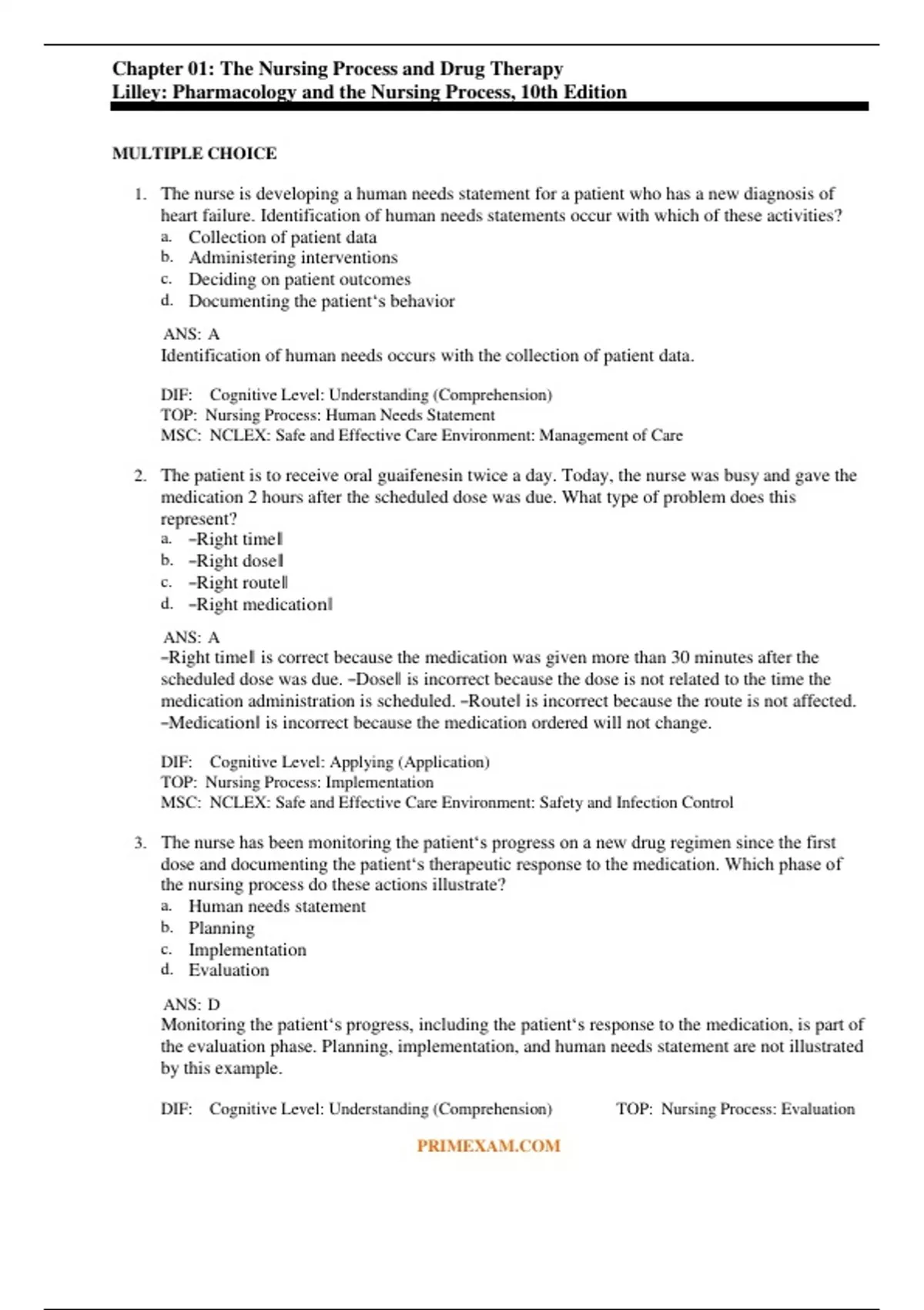 Lilley: Pharmacology and the Nursing Process, 10th Edition Test Bank