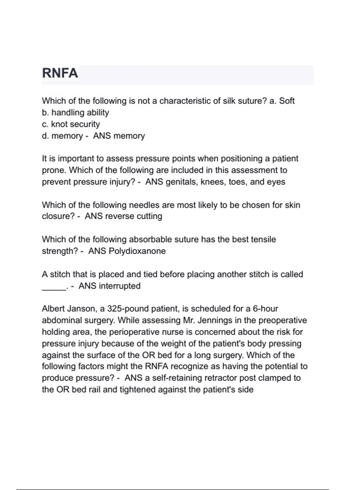 RNFA Exam Questions with correct Answers 2024/2025( A+ GRADED 100% VERIFIED).
