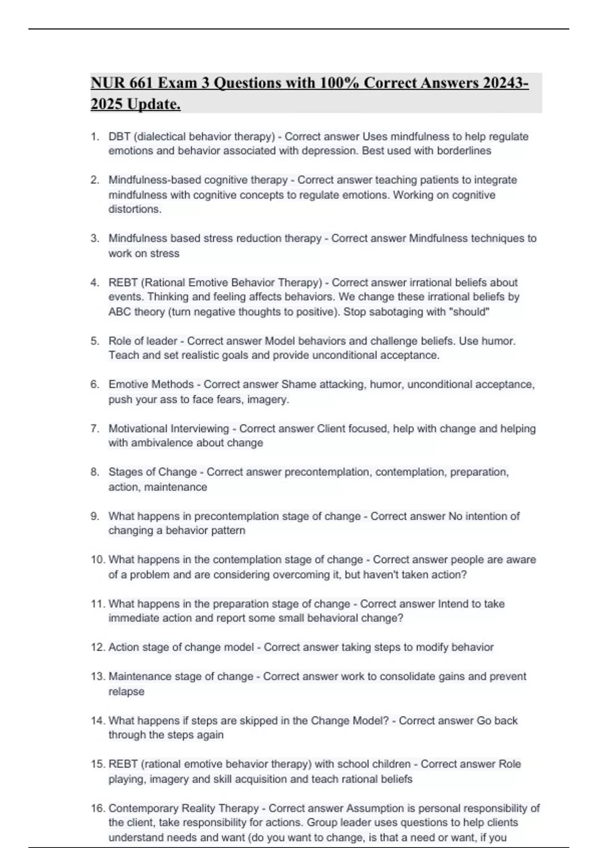 NUR 661 Exam 3 Questions with 100% Correct Answers Update.