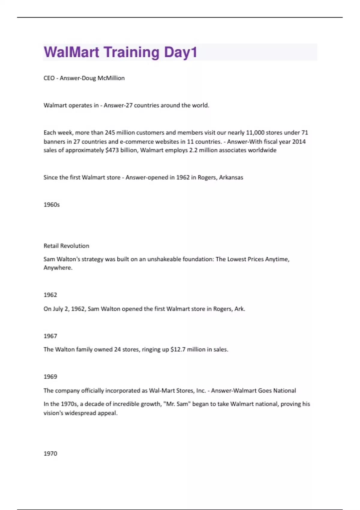 WalMart Training Day1 (Questions + Answers) Solved