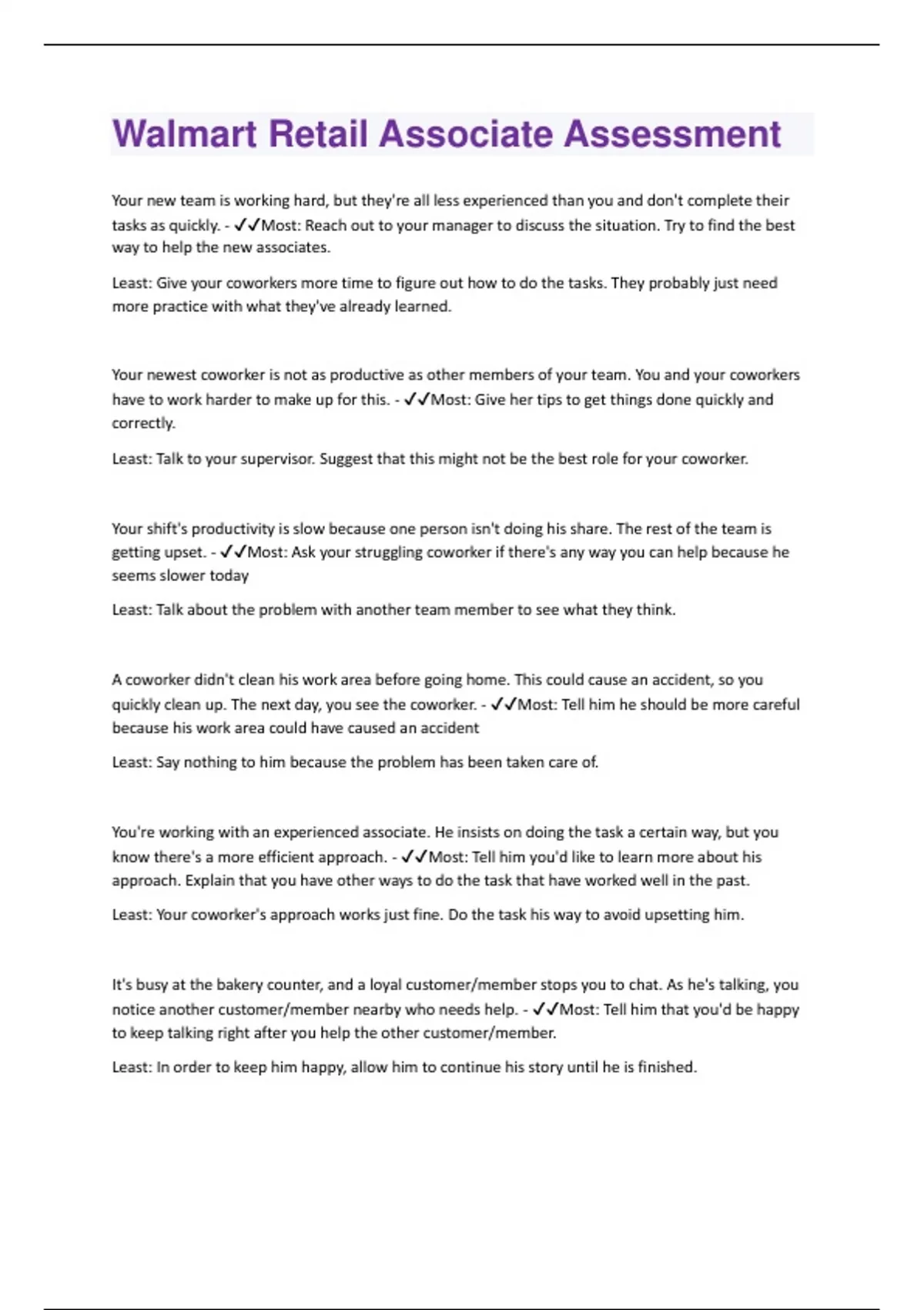 Walmart Retail Associate Assessment Solved Correctly Questions With Solutions.