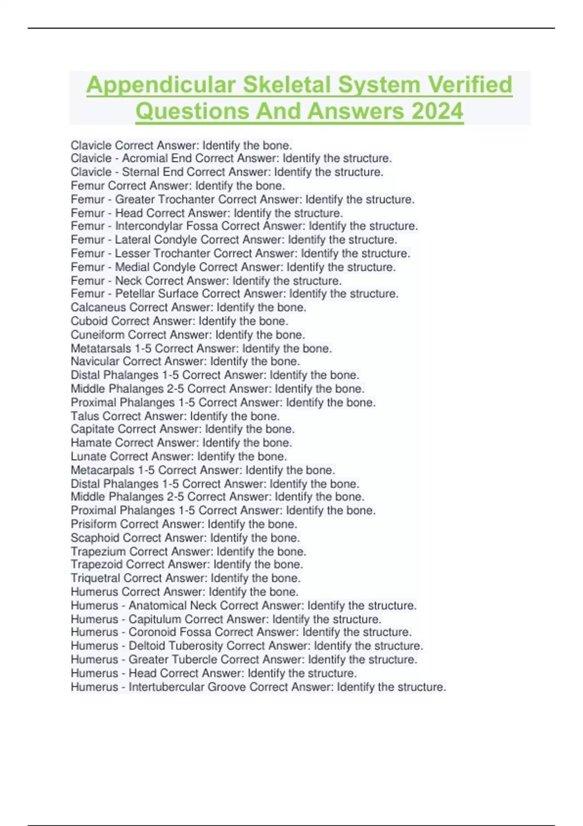 Appendicular Skeletal System Verified Questions And Answers 2024 Appendicular Skeletal System Verified Questions And Answers 2024