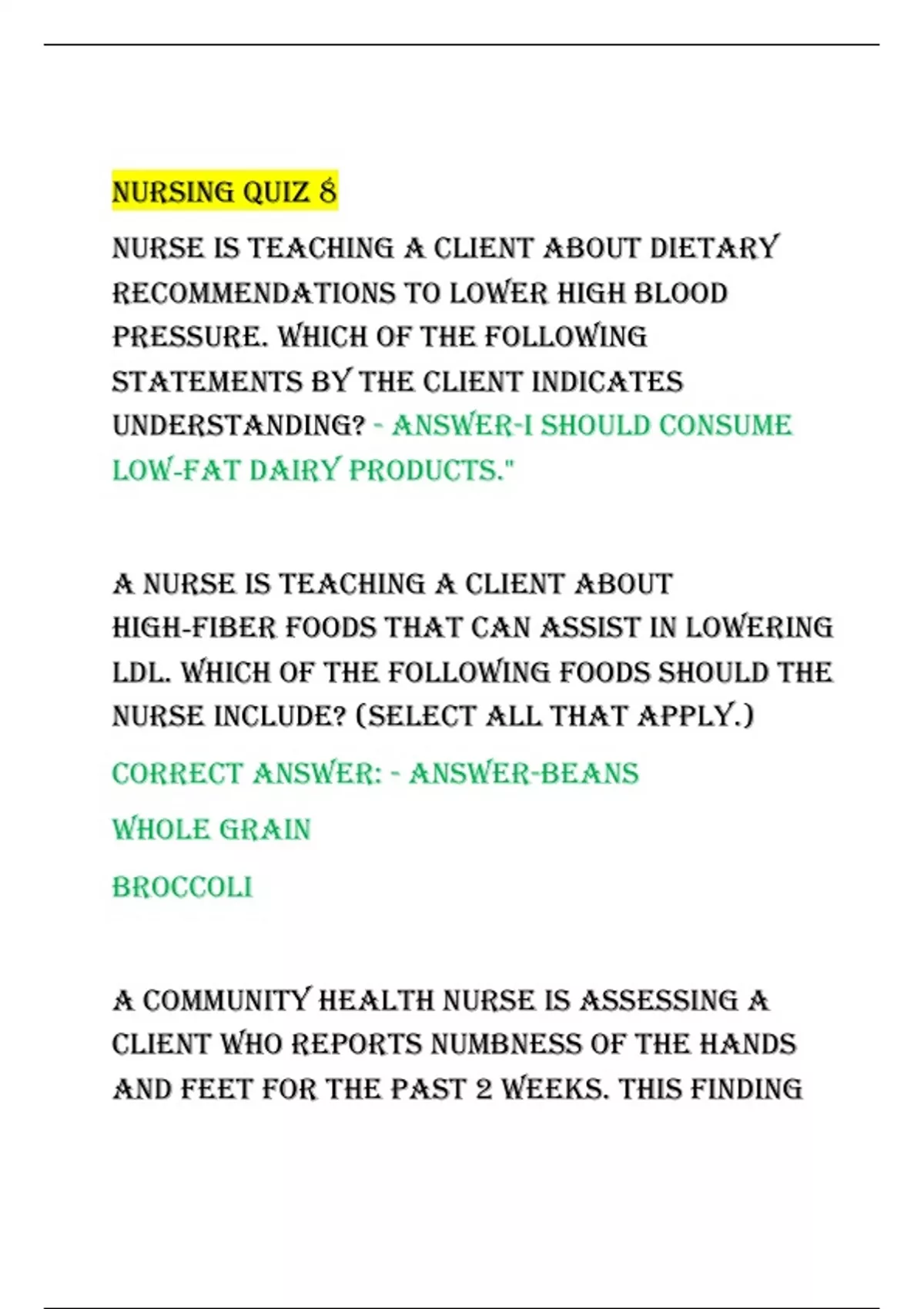 Exam of 4 pages for the course Nursing at Nursing (NursiNg quiz)