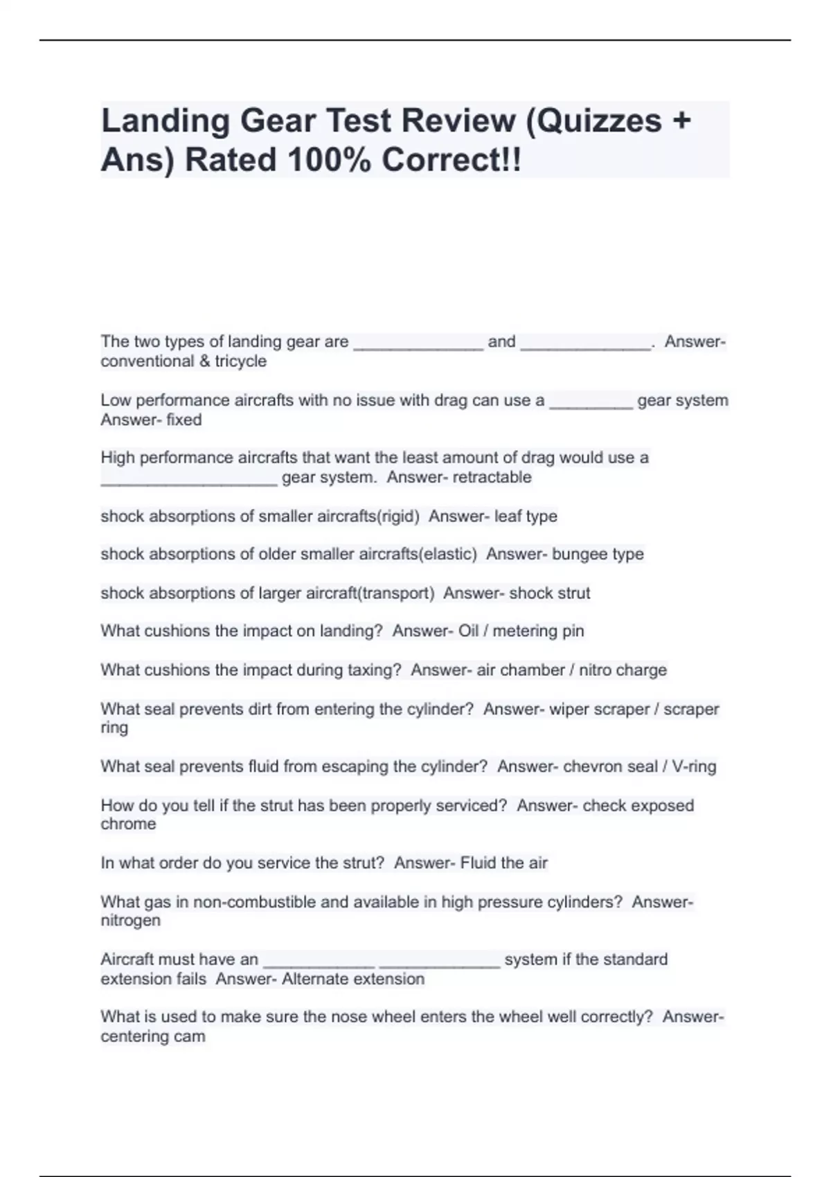 Landing Gear Test Review (Quizzes + Ans) Rated 100% Correct!!