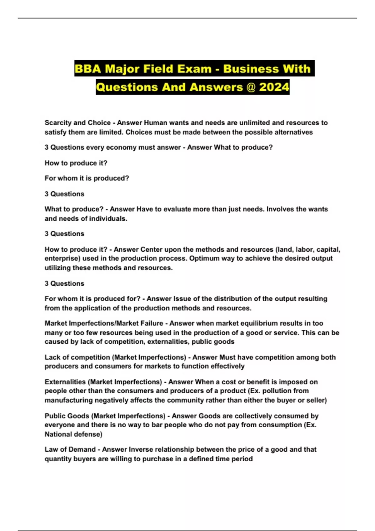 BBA Major Field Exam - Business With Questions And Answers @ 2024...