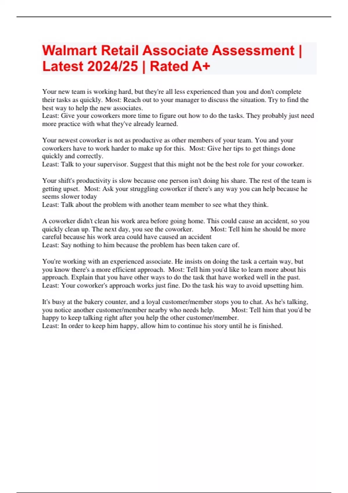 Walmart Retail Associate Assessment | Latest 2024/25 | Rated A+