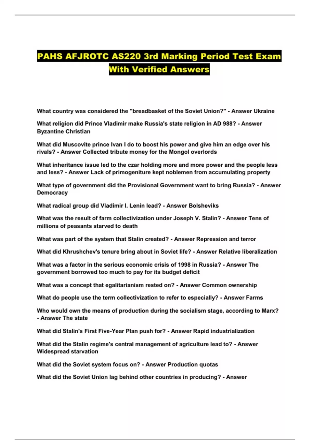 PAHS AFJROTC AS220 3rd Marking Period Test Exam With Verified Answers...