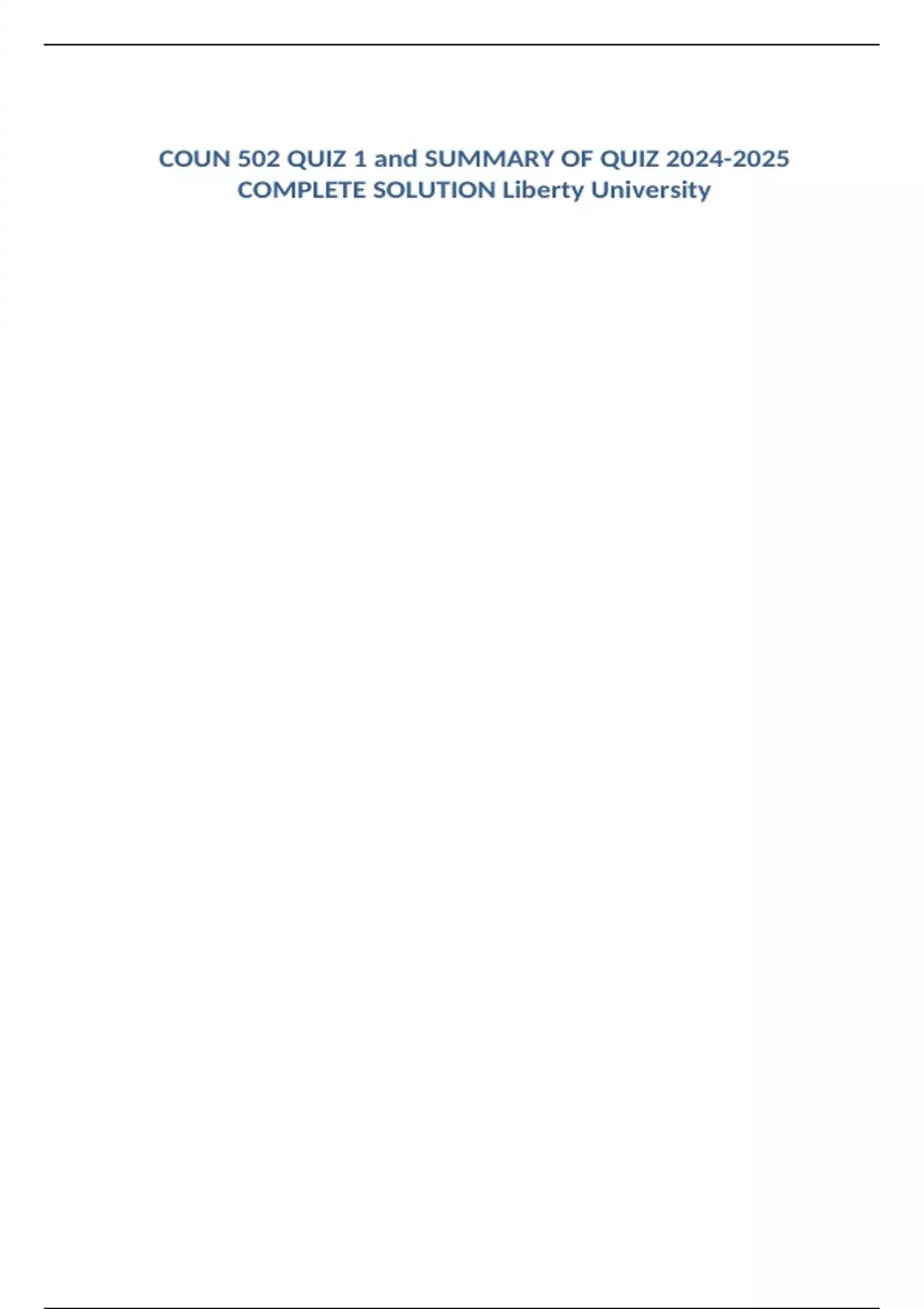 COUN 502 QUIZ 1 and SUMMARY OF QUIZ COMPLETE SOLUTION Liberty University