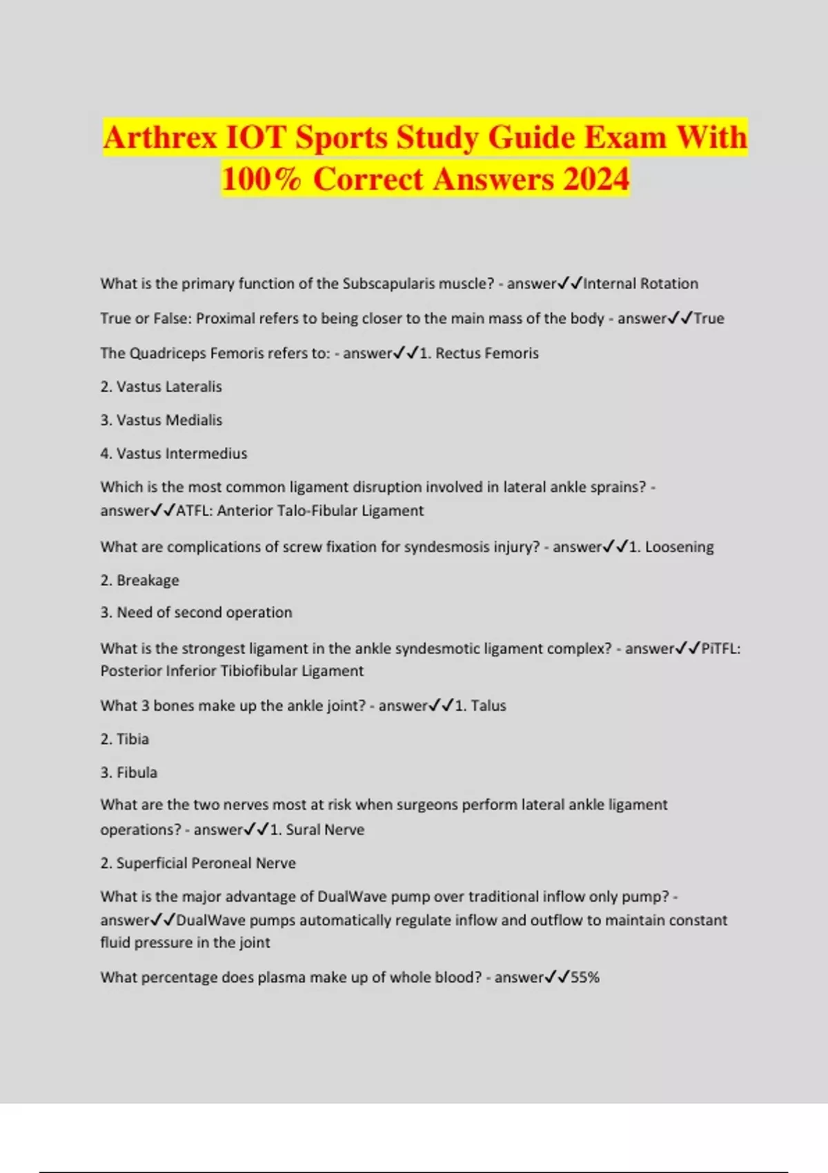 Arthrex IOT Sports Study Guide Exam With 100% Correct Answers 2024