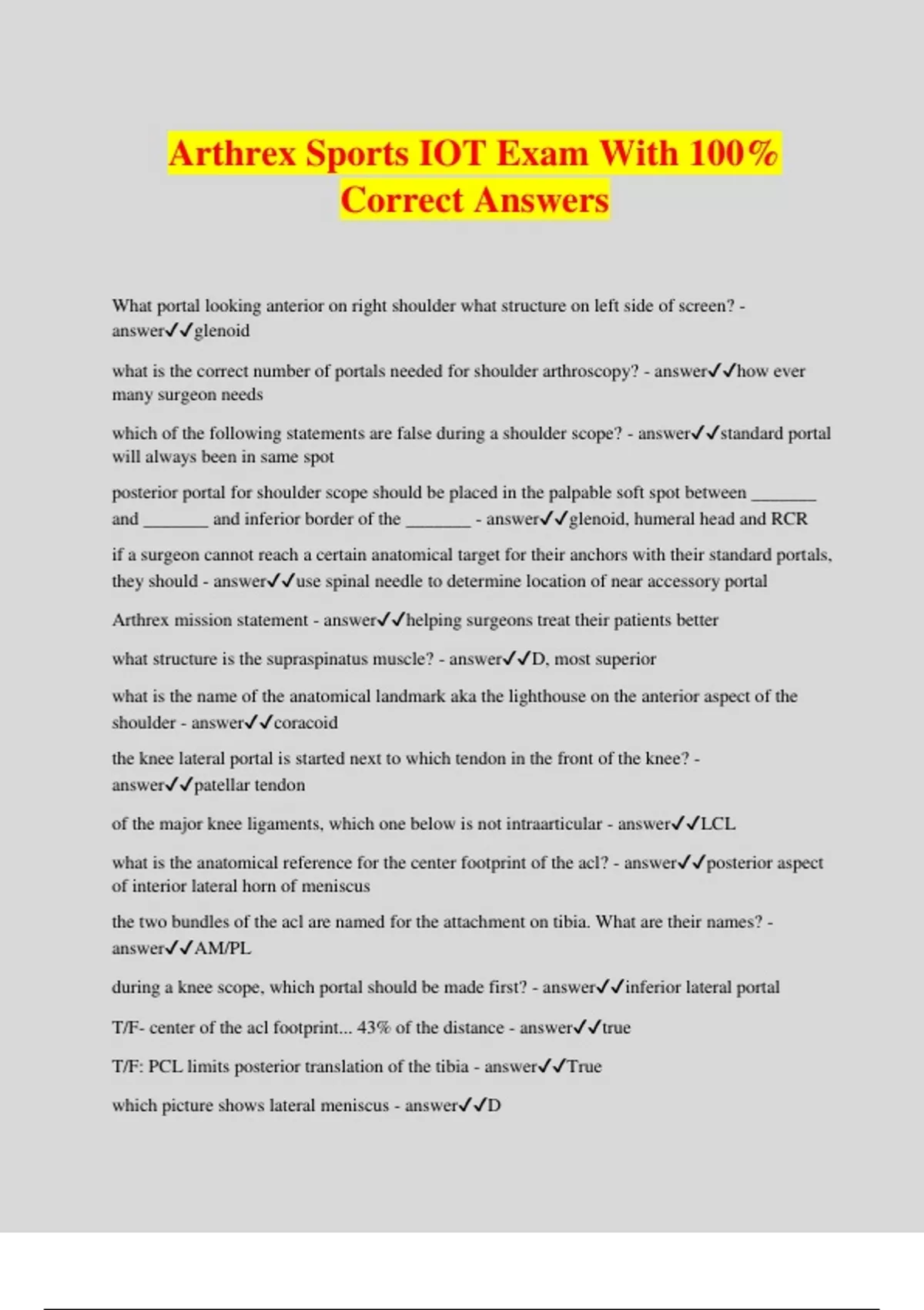 Arthrex Sports IOT Exam With 100% Correct Answers