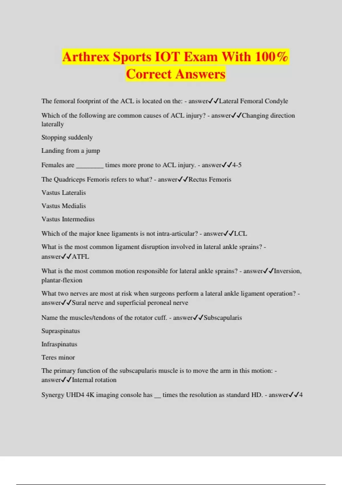 Arthrex Sports IOT Exam With 100% Correct Answers