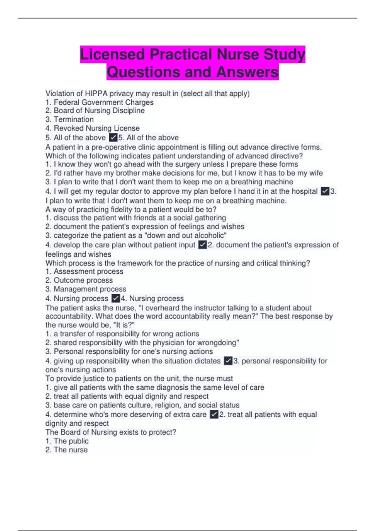 Licensed Practical Nurse Study Questions and Answers