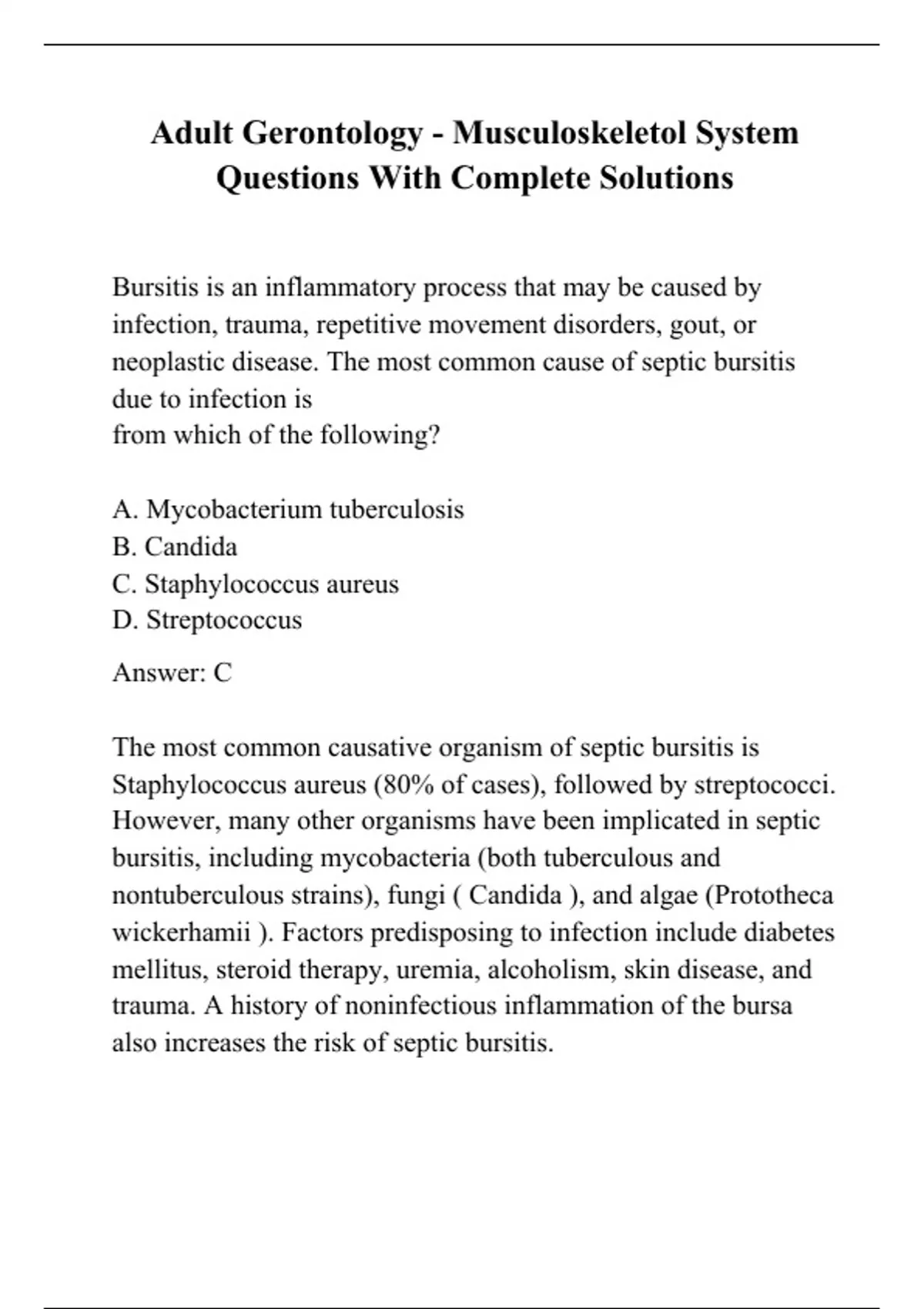 Adult Gerontology - Musculoskeletol System Questions With Complete Solutions