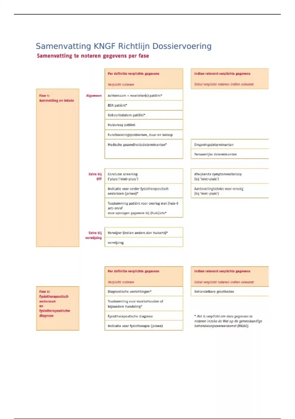 Samenvatting KNGF richtlijn dossiervoering