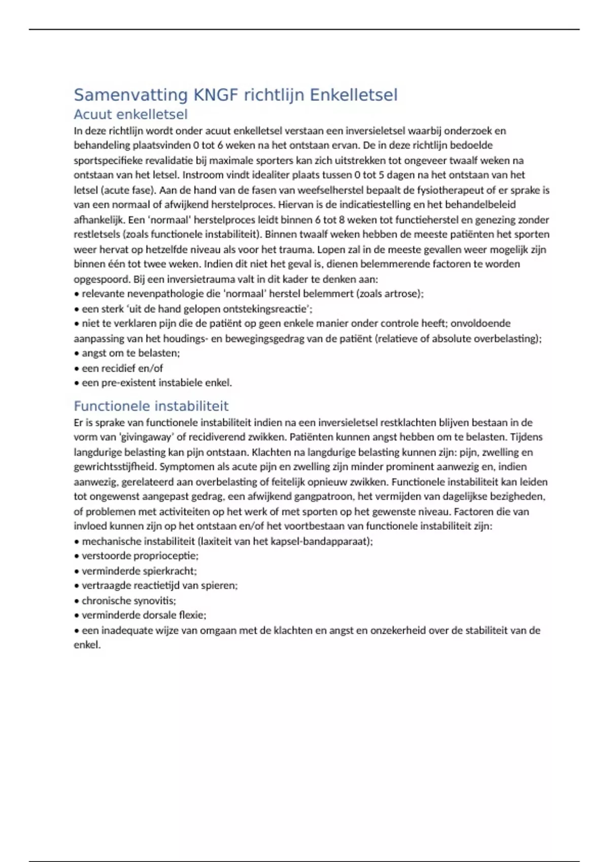Samenvatting KNGF richtlijn Enkelletsel