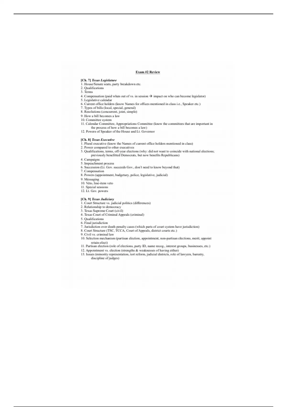 6. Succession (Lt. Gov. succeeds Gov., don’t need to know beyond that)