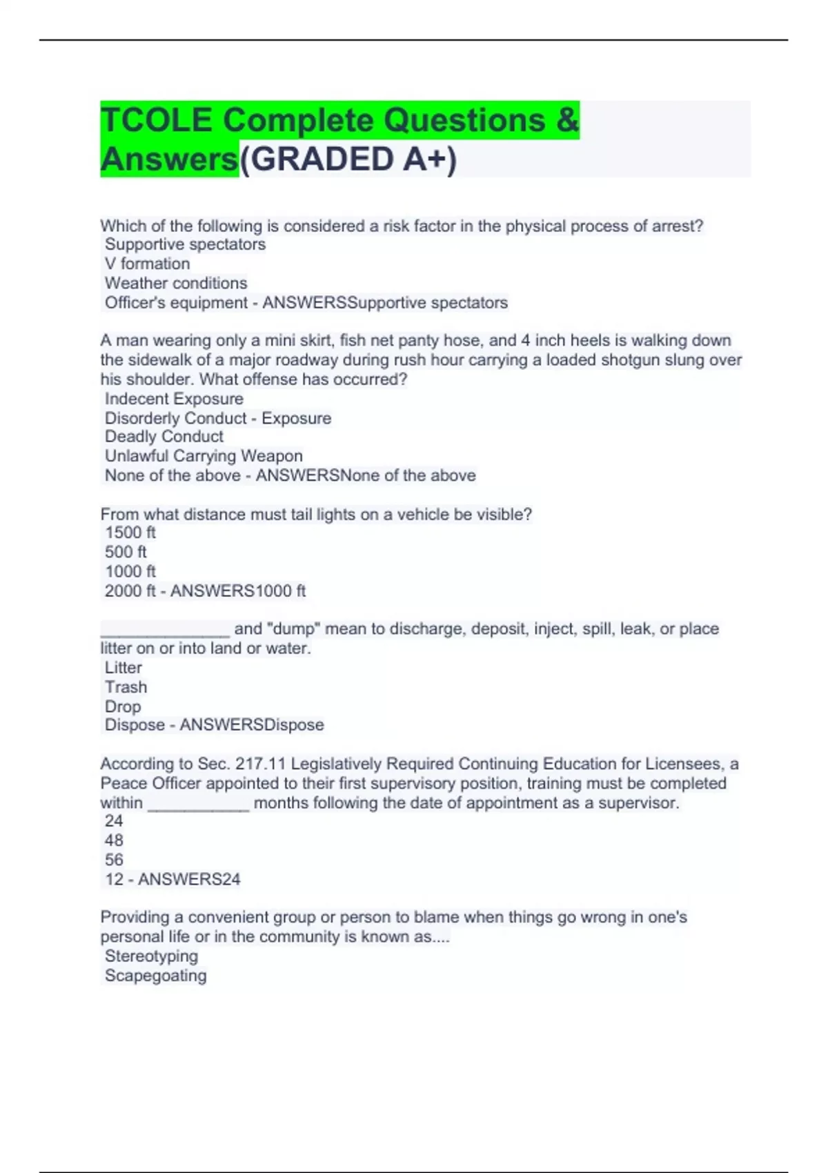 TCOLE Complete Questions & Answers(GRADED A+)